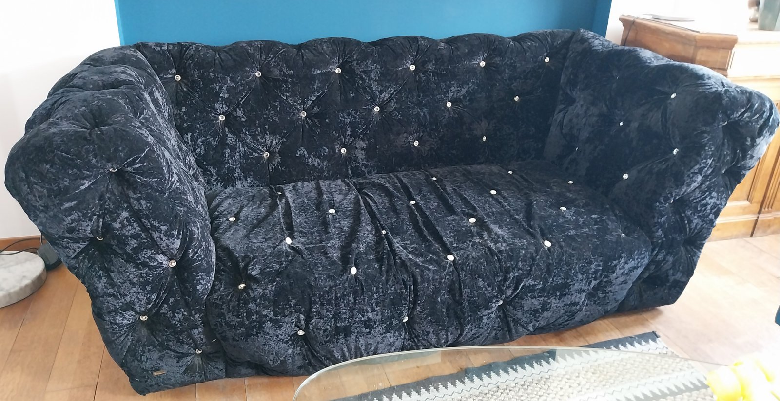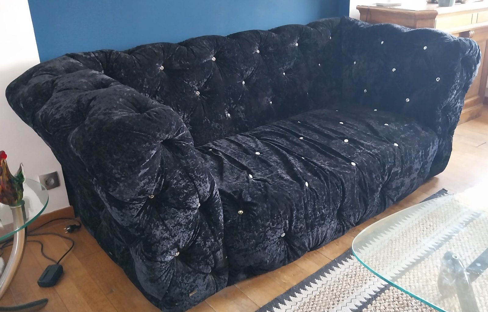 Canapé Marilyn de la marque Bretz – Élégance glamour et confort absolu Ce canapé Marilyn de la prestigieuse marque Bretz allie à la perfection le style glamour et l'iconique design chesterfield. Son charme est sublimé par des cristaux Swarovski, apportant une touche de luxe et de raffinement à votre intérieur. Doté d’une assise ultra confortable, ce canapé vous offrira un véritable cocon de détente tout en ajoutant une note d’élégance intemporelle à votre décoration. Un meuble d'exception, alliant esthétique, confort et qualité, pour un intérieur résolument chic !