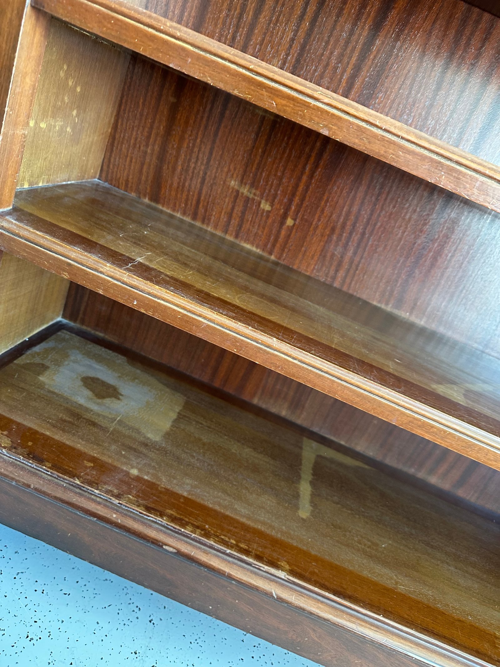 Charmante petite bibliothèque en bois d'acajou massif, idéale pour ranger livres et objets déco. Son design compact s’intègre parfaitement dans un salon, un bureau ou une chambre. Fabriquée au XXe siècle, le meuble est parfaitement stable, bien qu'il soit d'époque.
