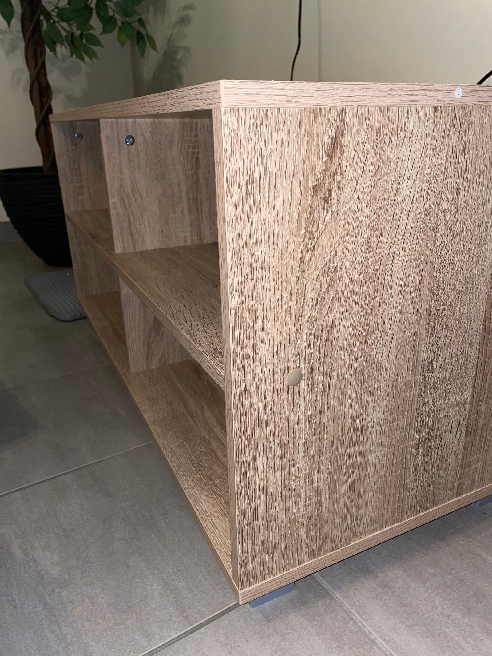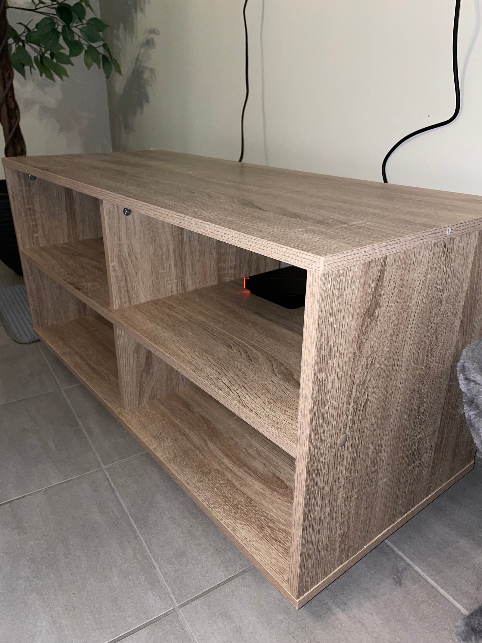 Vend ce meuble TV qui fait partie du même assortiment que les tables de nuits. Je le vend car ma télé est accrochée au mur et n’a plus besoin d’un meuble. En très bon état et surtout n’a aucune traces d’usures.
