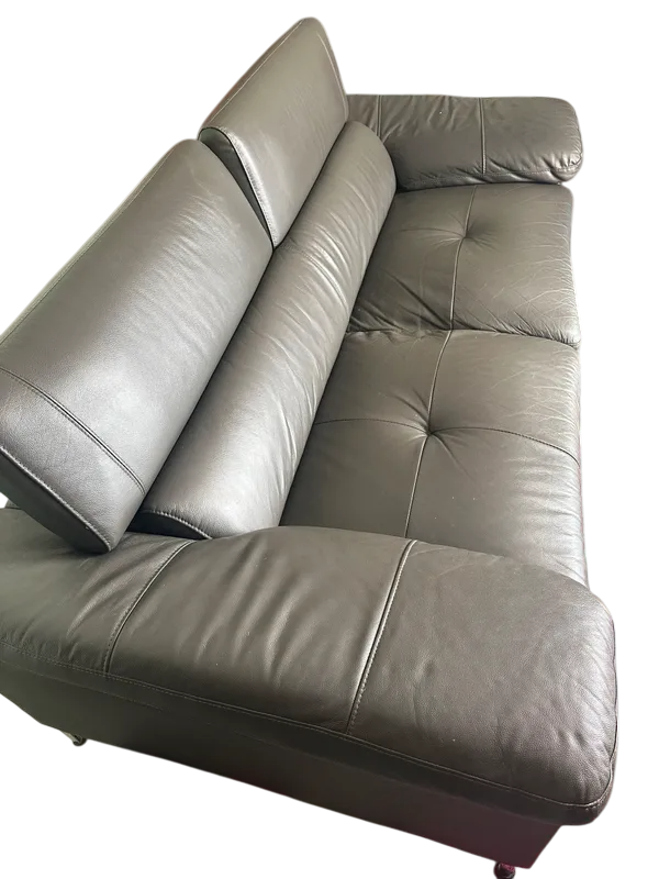 Ce canapé est fabriqué en cuir de buffle, offrant un design élégant et moderne. Il est équipé de coussins moelleux et d'accoudoirs rembourrés pour un confort optimal. Ce canapé est idéal pour ajouter une touche de sophistication à votre salon tout en garantissant durabilité et style intemporel.