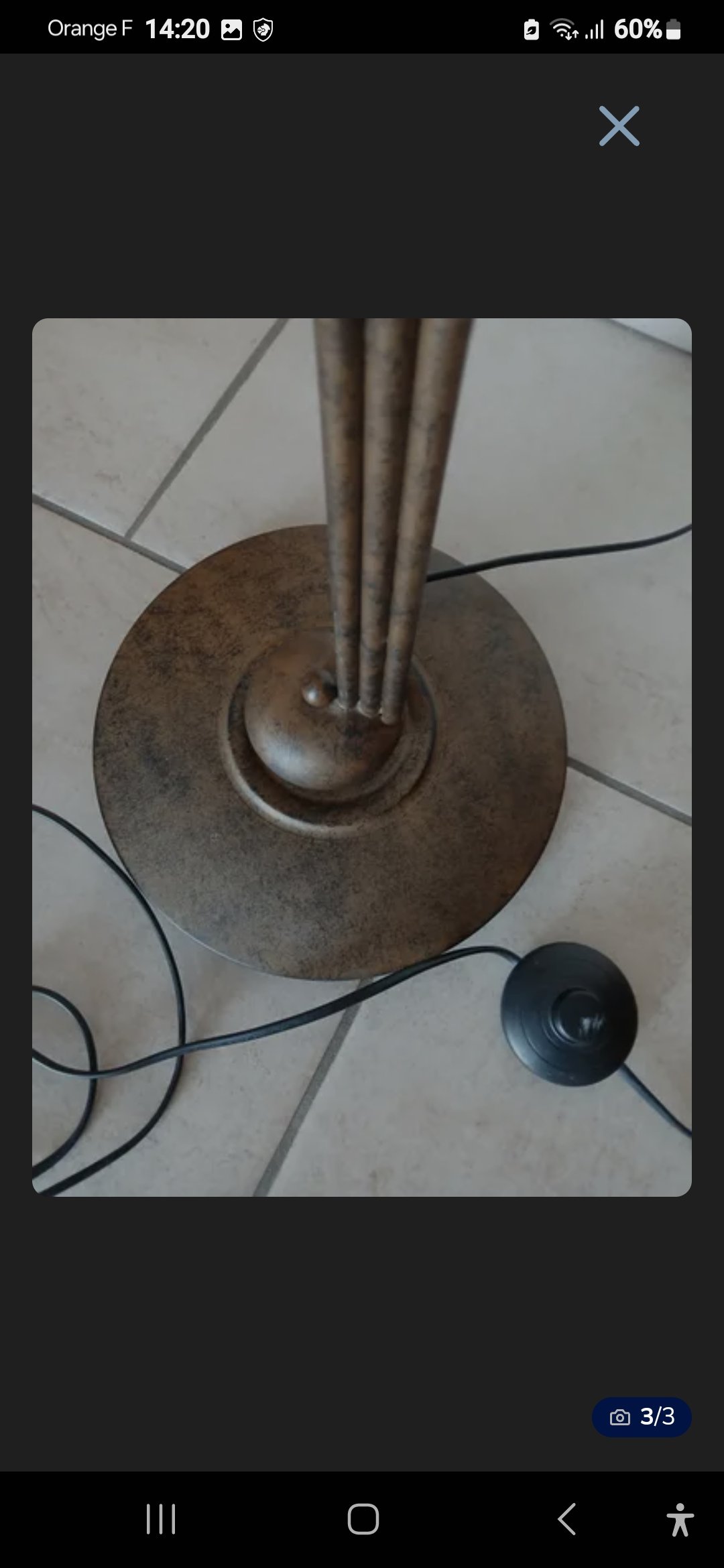 Beau lampadaire 3 branches à fleurs avec support en imitation laiton, en très bon état.