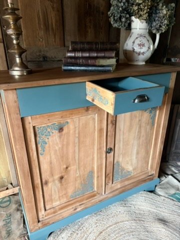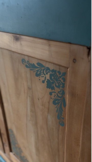 Buffet parisien noyer massif restauré avec charme – Pièce unique Laissez-vous séduire par ce superbe buffet parisien entièrement restauré, prêt à apporter du cachet à votre intérieur. 🔹 Caractéristiques : • Bois massif patiné pour un effet authentique. • Détails peints en vert parisien de chez Libéron® (attention, il est plus vert que sur la photo qui le fait paraitre un peu plus bleuté), ajoutant une touche élégante et moderne. • Un tiroir central avec poignée coquille, pratique pour le rangement. • Deux portes avec motifs floraux discrets • Pieds repeints pour une finition harmonieuse. • Traitement xylophène 2 couches • Remplacement des étagères intérieures • Remplacement de la poignée du tiroir • Suppression de la serrure (non fonctionnel) avec ajout aimant • Protection : Vernis cire mat extra dur, sur l’ensemble du meuble, 3 couches sur le plateau. Donne une finition aspect ciré naturel sans foncer les meubles et sans le problème de la cire ! 🤎 Idéal pour une déco bohème, campagne chic ou maison de charme. Ce meuble allie parfaitement l’ancien et le moderne, prêt à embellir votre salon, salle à manger ou entrée.