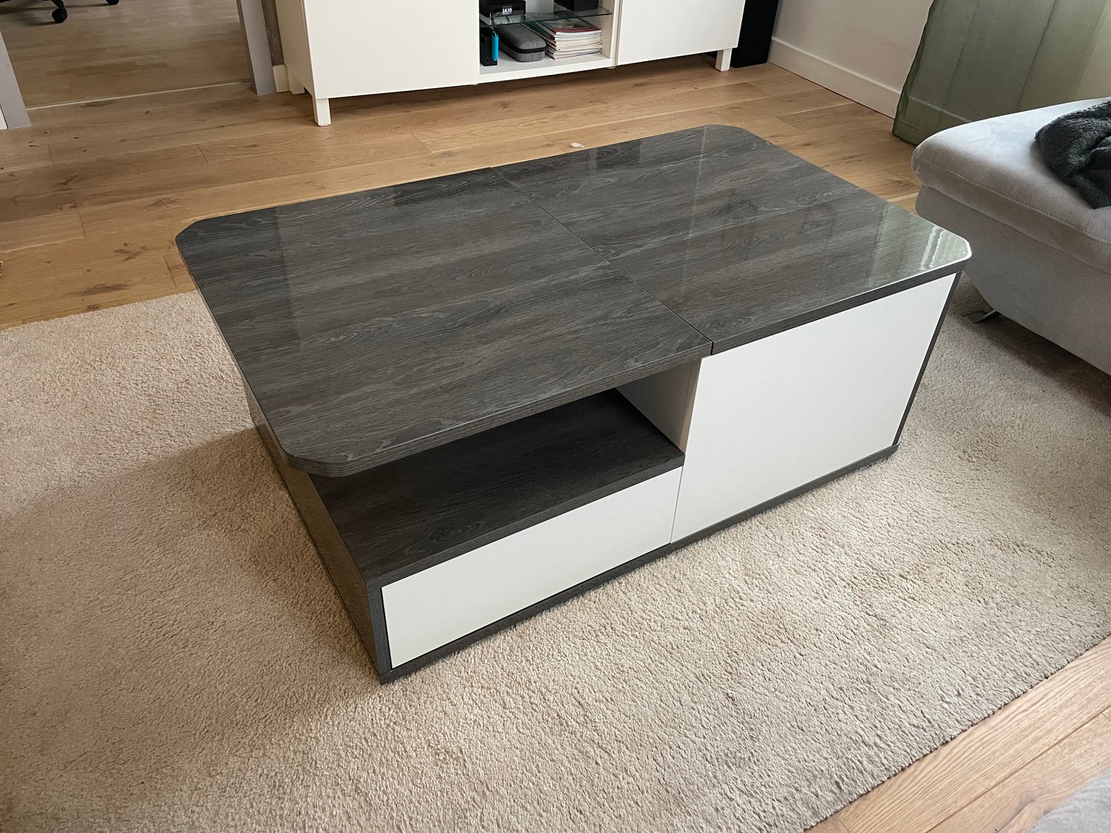 Vends cette table basse de chez BUT, modèle MATERA actuellement sur leur site à 459 euros. Les planches du dessus qui sont vernies sont neuves (changement spécifiquement pour la vente). Vendue avec facture et extension de garantie que j'ai prise à l'achat qui est encore valable jusqu'au 05/01/2026.
