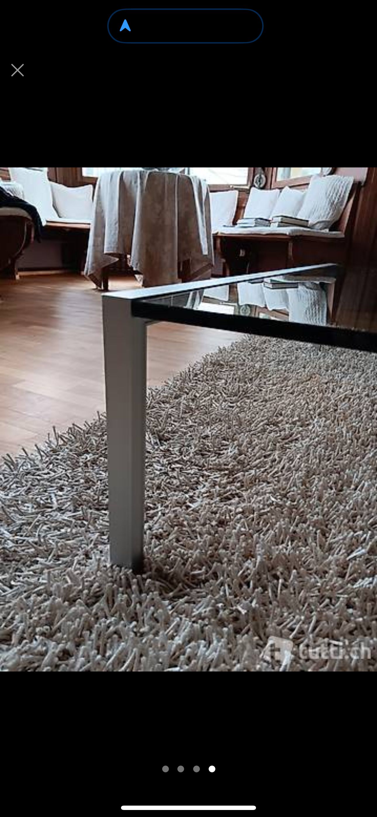 Table basse carrée en verre trempé avec pieds en métal argenté. Convient très bien pour une décoration se voulant moderne.