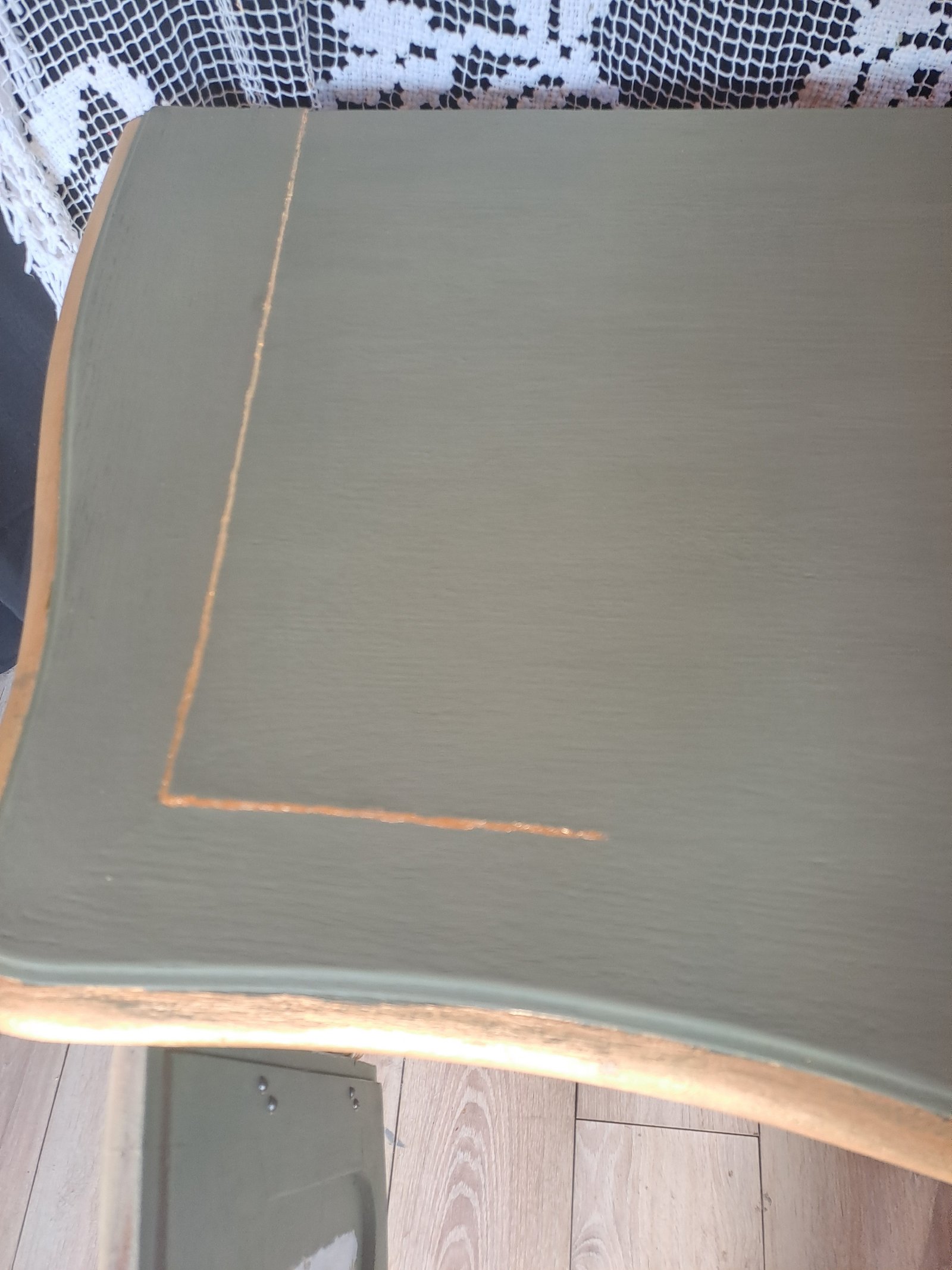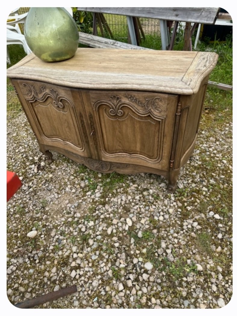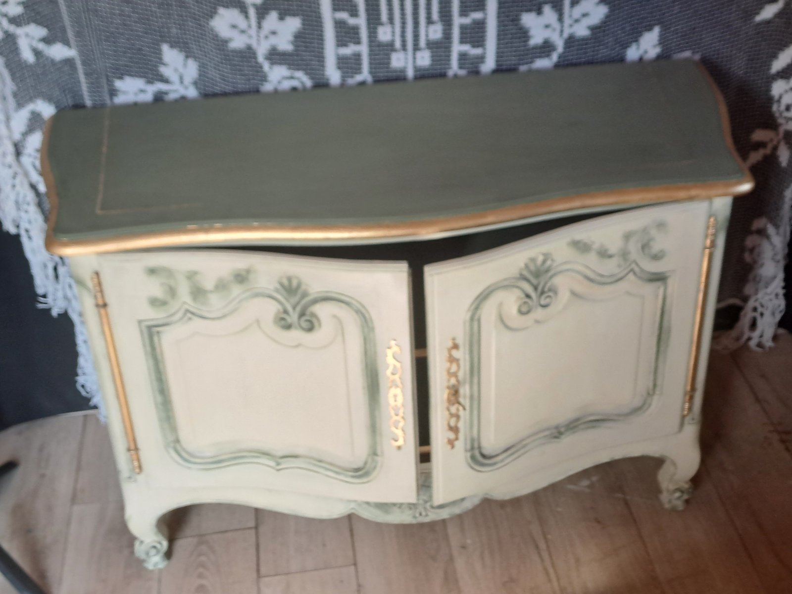 "Parfait pour apporter une note de charme et de lumonosite" Cet ancien buffet en chêne qui a vécu dehors plusieurs mois, combine à la fois l'élégance du blanc ocre et du vert olive (peinture à la craie) soulignée par de discrètes dorures (feuilles d'or). Sans oublier l'interieur qui a été peint en vert olive mis en valeur par un collage de papier de riz représentant des oiseaux colorés afin d'apporter un style campagne chic. Tout cet ensemble harmonieux met en avant ses lignes classiques tandis que les touches dorées ajoutent un éclat sophistiqué.
