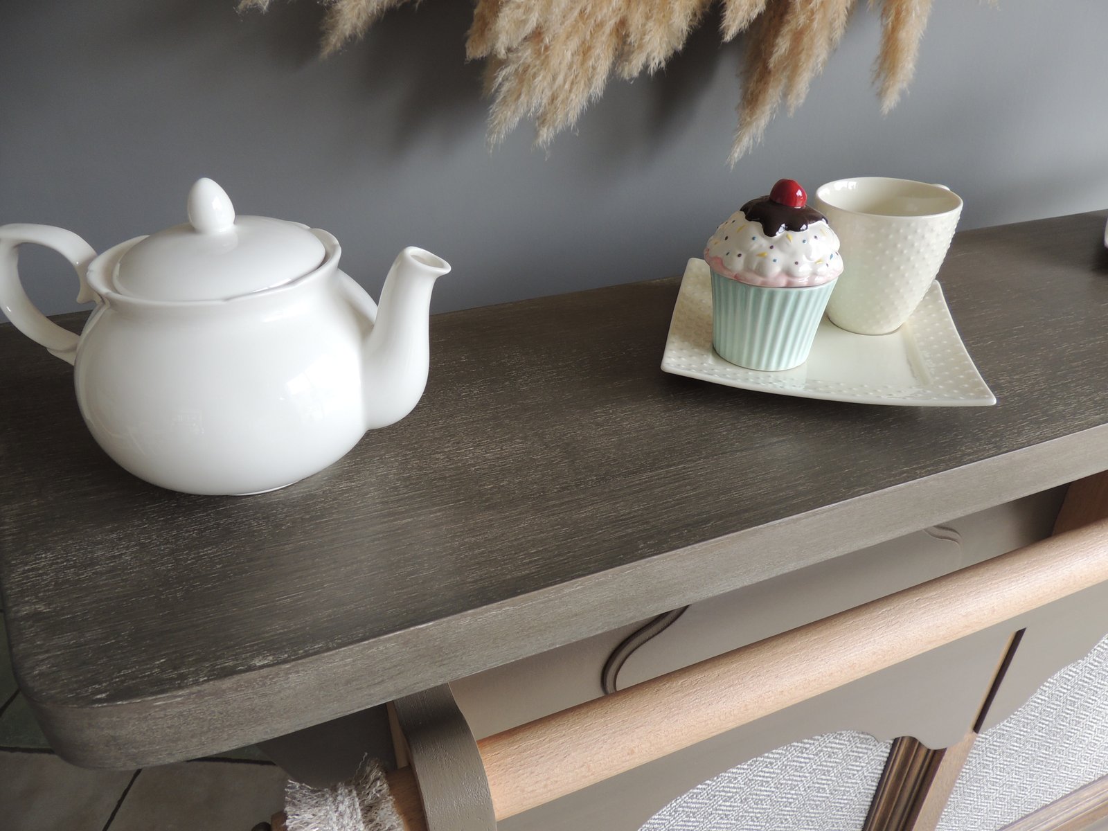 En voici un, un meuble qui, un peu grâce à moi, a retrouvé la richesse en lui ! Une déco hybride, zen mais chaleureuse aussi : Fondez pour le style japandi ! Un métissage élégant entre le scandinave et l'esthétisme japonais. Eh oui, c’est une histoire d’amour entre le style scandinave et l’esthétisme japonais. Pour être plus précis, c’est un savant mélange de "wabi-sabi" et de "hygge". Traduction : un tendre métissage design, empreint d’élégance et de sérénité. L'objectif ? Créer un style qui ressort le meilleur des deux mouvements. Attention, on est zen mais chaleureux avant tout ! Résultat ? Un intérieur qui respire la sérénité et le bien-être. Ce meuble a été relooké par une professionnelle. Aérogommé, poncé, fondur (sous-couche) et vitrificateur (3 couches) même sur la tapisserie. Les huisseries ont été brossées au touret et sont étincelantes, et une fonctionnalité optimale de la fermeture est assurée. Le tiroir et la porte ont été parfaitement recalés pour gérer les décalages, tout est donc parfaitement équilibré. Résultat ? Un visuel net et un confort d'utilisation très appréciable. Des finitions d'une qualité irréprochable. Une tapisserie qui évoque la rêverie. Du zen partout et une peinture dorée pour le charme chic "à la française" que vous retrouverez soutenue et en liseré sur le plateau, mais aussi en jus, comme sur la façade du tiroir et de la porte pour un effet irisé discret. Il sera tout aussi parfait dans une entrée en meuble d'appoint ou dans un salon en bout de canapé. mots clés : meuble vintage, style japandi, relooking professionnel, décoration intérieure, design scandinave, esthétisme japonais, wabi-sabi, hygge, sérénité, bien-être, charme chic, peinture dorée