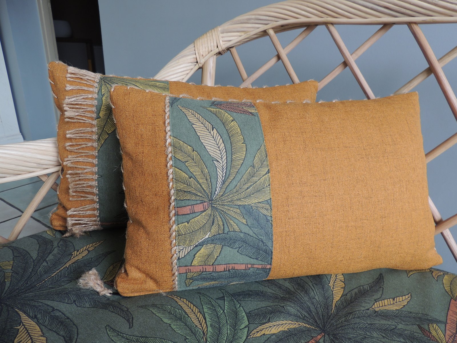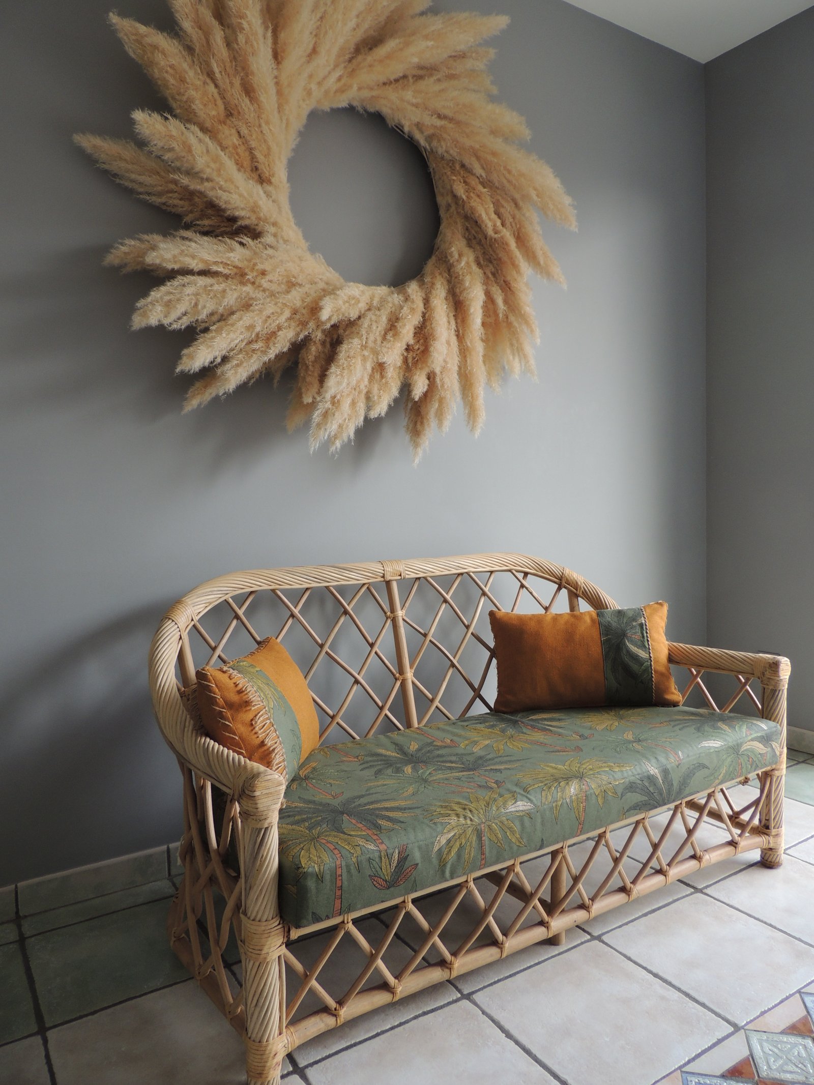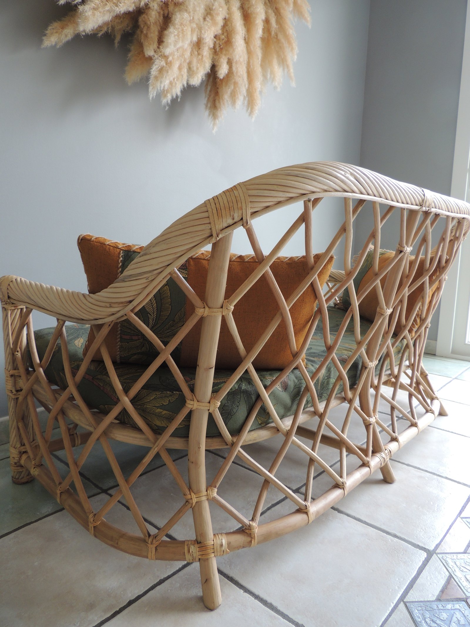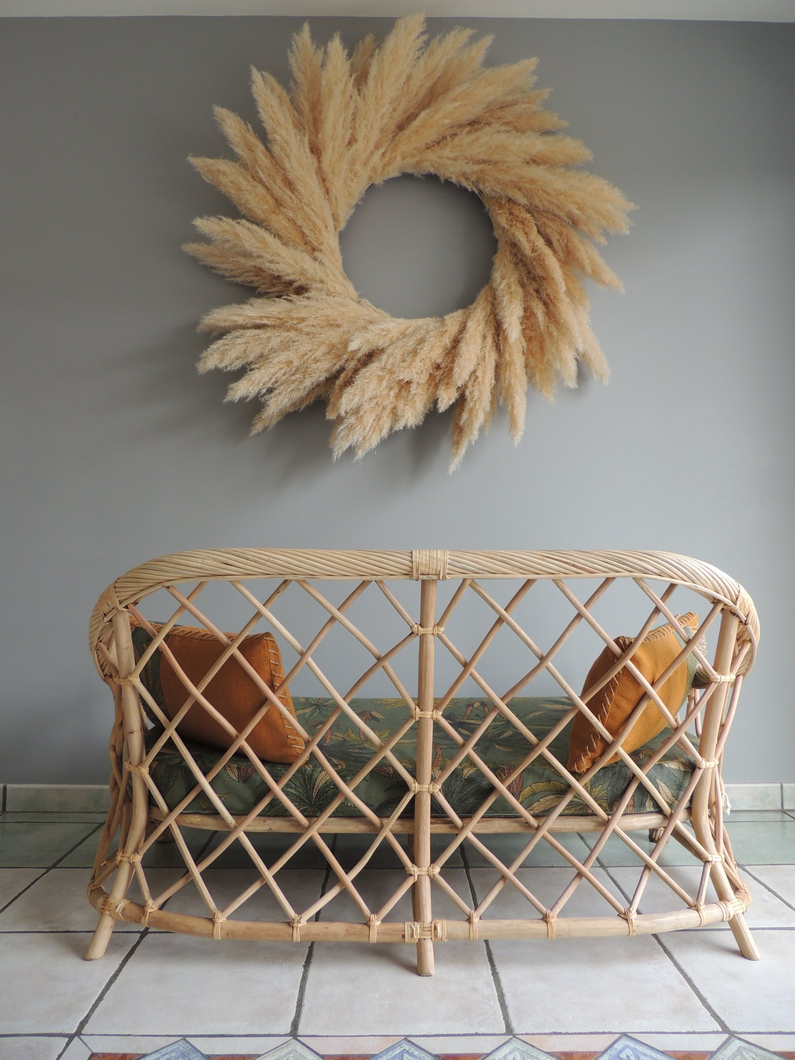 Cette pièce en rotin et bambou croisés naturels est l'ajout parfait à votre maison. Faite de matériaux naturels, elle a été réalisée à la main de manière complexe par des artisans qualifiés. Le résultat est une pièce qui n'est pas seulement belle, mais aussi durable. Cette pièce peut être utilisée comme un objet décoratif ou comme un meuble fonctionnel. Si vous recherchez une pièce unique et accrocheuse pour votre maison, cette pièce en rotin tressé naturel est le choix parfait. Ajoutez-la à votre espace aujourd'hui et profitez de la beauté et de la durabilité de cette pièce unique pour les années à venir. Canapé 2 à 3 places en rotin clair vendu avec ses coussins décoratifs brodés à la main (corde naturelle). Coussins bicolores avec petites franges décoratives, déhoussables par zip et lavables. Ils sont munis d'une housse de propreté en coton blanche. L'assise est déhoussable par zip et la mousse est recouverte d'une housse de propreté blanche, elle-même déhoussable. L'ensemble est confectionné par une couturière expérimentée. Banquette rotin, meuble vintage, canapé 2 places, canapé 3 places, rotin naturel, coussins décoratifs, meuble artisanal, durabilité, style vintage, meuble fonctionnel.