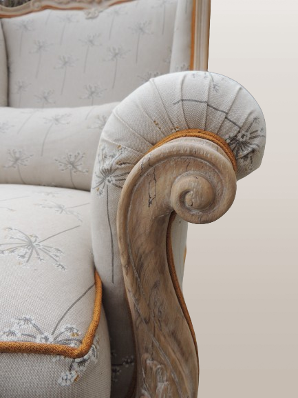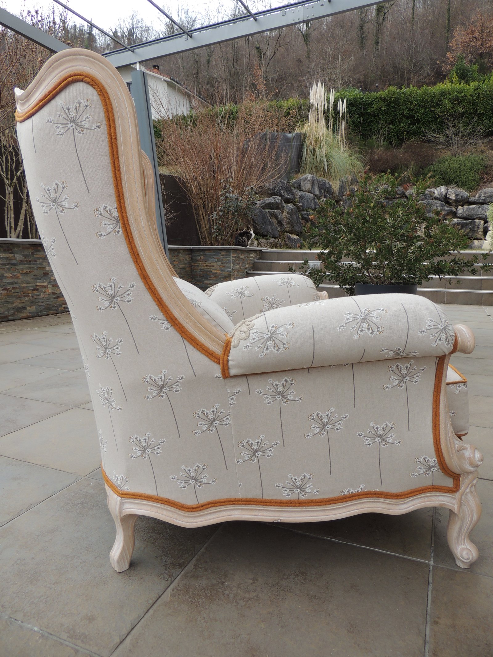 Transformez votre espace de vie en un véritable sanctuaire de style et de confort avec ce magnifique fauteuil bergère Louis XV, méticuleusement relooké pour apporter une touche de modernité à votre intérieur. Avec son tissu gris clair et son motif floral délicat, ce fauteuil allie élégance classique et design contemporain. Chaque détail de ce fauteuil a été soigneusement repensé pour lui donner une nouvelle vie. Le bois sculpté à la main, caractéristique du style Louis XV, a été restauré et patiné avec amour pour préserver son charme d'antan. Le tissu gris clair, la passementerie rebrodée et le double passepoil ocre offrent un contraste subtil avec le motif floral qui ajoute une note de fraîcheur et de féminité à l'ensemble. Cette finition subtile met en valeur les détails sculptés à la main, caractéristiques du style Louis XV, tout en apportant une touche de fraîcheur et de modernité. Fauteuil bergère Louis XV, meuble vintage relooké, style Louis XV modernisé, élégance classique, design contemporain, bois sculpté, tissu floral.
