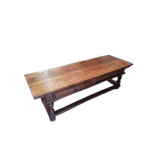 Authentique et robuste, cette table basse en chêne massif allie charme naturel et capacité de rangement. Dotée de deux tiroirs, elle s’intègre parfaitement dans un salon au style classique.
