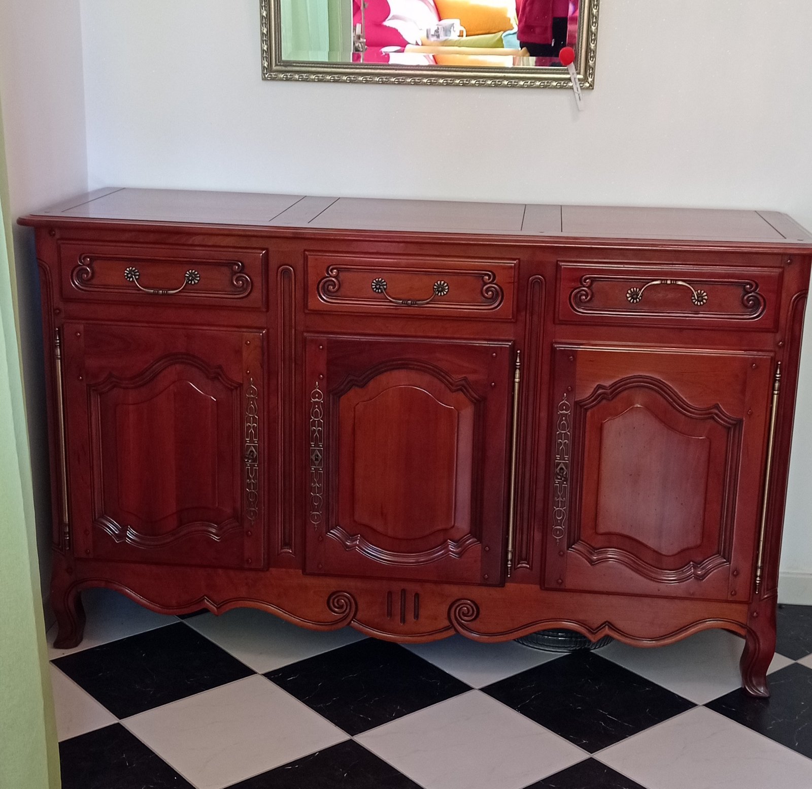 VENDS BUFFET EN MERISIER MASSIF . STYLE CHEVERNY . TRES BON ETAT . HAUTEUR 100 LONGUEUR 165 PROFONDEUR 55. 3 PORTES - 3 TIROIRS