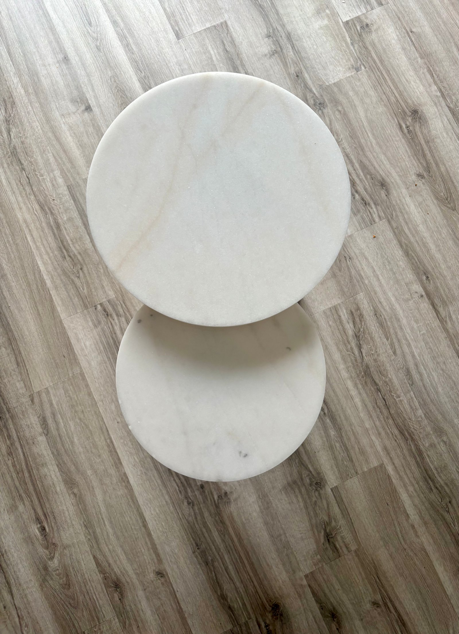 Apportez une note d’élégance et de style moderne à votre salon avec ce duo de tables basses Maison du Monde – modèle TWINS, acheté en 2022. L’association du plateau en marbre blanc et des pieds en chêne massif crée un design à la fois chic, contemporain et lumineux, idéal pour sublimer un intérieur. Ces tables basses modulables peuvent être utilisées ensemble ou séparément, selon vos besoins. Le marbre de 14 mm d’épaisseur, protégé par un vernis hydrofuge, facilite l’entretien, tandis que le bois massif garantit solidité et durabilité. Leur style polyvalent s’intègre aussi bien dans une décoration scandinave, minimaliste, moderne ou design. À noter : quelques petites taches naturelles du marbre et un coin légèrement abîmé sur un plateau, sans impact sur la stabilité ni l’usage. Malgré ces détails, ce duo de tables en marbre et bois reste un meuble décoratif, robuste et fonctionnel, parfait pour un salon tendance.