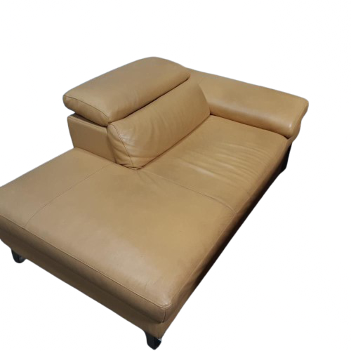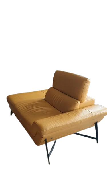 Dormeuse en cuir véritable couleur jaune, au design moderne et épuré. Ce modèle allie confort et élégance avec son dossier bas, son assise généreuse et son appui-tête réglable. Idéale pour un salon contemporain, un coin lecture ou un espace détente, elle invite à la relaxation tout en apportant une touche haut de gamme à votre intérieur.