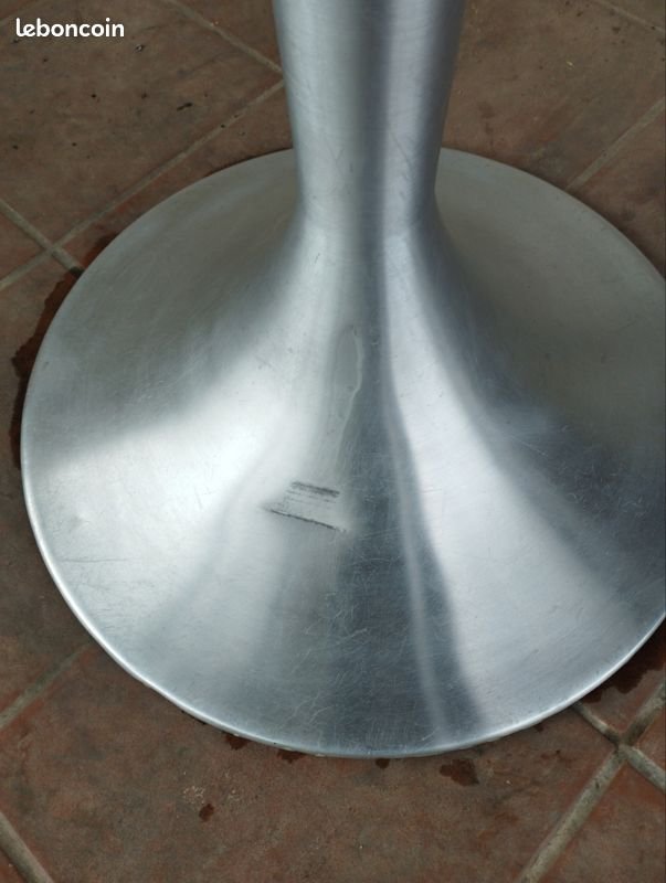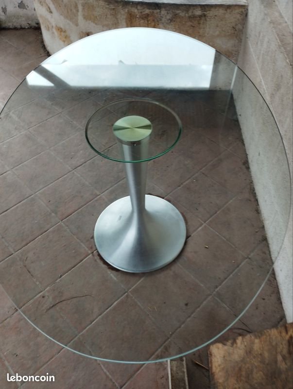 Vends table de salle à manger en verre. Quelques rayures sur le plateau et une grosse sur le pied avec un petit enfoncement. Voir photo. Le plateau est lourd.