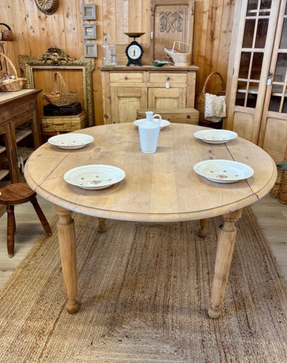 Cette superbe table de ferme ovale est entièrement réalisée en chêne massif, un bois noble reconnu pour sa solidité et sa longévité. Son plateau aux lignes douces facilite la circulation et crée une ambiance chaleureuse, idéale pour les repas en famille ou les dîners entre amis. Le grain naturel du bois et sa patine authentique témoignent de son histoire, tandis qu’une légère marque sur le plateau ajoute une touche de vécu, renforçant son caractère. Dotée d’un grand tiroir central discret, elle offre un espace de rangement pratique pour les couverts ou le linge de table. Avec ses dimensions (L150 x P94 x H74 cm, hauteur sous bandeau : 60 cm), elle s’intègre parfaitement dans une salle à manger, une cuisine ouverte ou un espace de vie lumineux. Son style campagne chic, bohème ou classique revisité en fait une pièce maîtresse qui s’accorde avec les intérieurs les plus soignés.