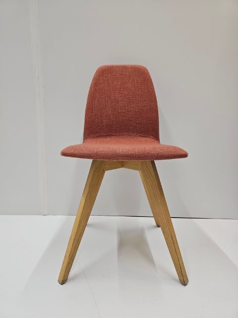 Chaise individuelle au style bistrot chic, idéale pour une salle à manger, un bureau ou un coin lecture. Revêtement en tissu rouge profond, à la fois chaleureux et résistant, avec pieds en bois massif pour une excellente stabilité. Son assise rembourrée offre un bon confort, même pour une utilisation prolongée.
