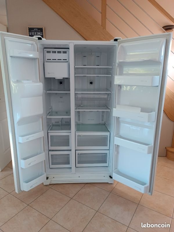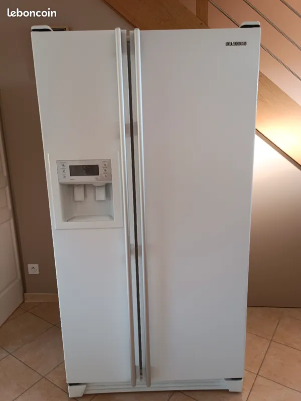 Ce modèle Samsung side-by-side allie design moderne et fonctionnalité haut de gamme. Doté d’un distributeur intégré pour l’eau fraîche, les glaçons et la glace pilée, il offre un confort quotidien idéal pour les familles ou les amateurs de cuisine bien équipée. Le système de froid ventilé No Frost garantit une conservation optimale sans givre. Avec sa finition blanche élégante, il s’intègre facilement dans une cuisine contemporaine, scandinave ou minimaliste. En très bon état, toutes les fonctions sont opérationnelles, y compris le contrôle électronique et les compartiments spacieux. Petite trace d'usure de chaque côté latéral (voir dernière photo)