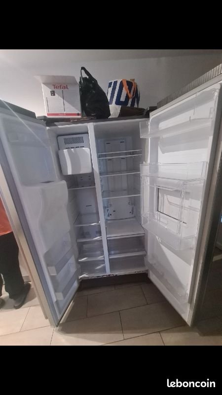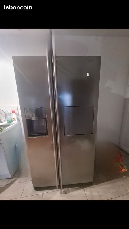 Frigo américain LG, modèle side-by-side, en très bon état, avec de nombreuses fonctionnalités pratiques. La partie congélateur est équipée d’un distributeur d’eau, glaçons et glace pilée, idéal pour un usage quotidien. Il dispose également d’une trappe extérieure permettant d’accéder rapidement aux bouteilles sans ouvrir la porte, un vrai plus pour limiter les pertes de froid. À l’intérieur, le réfrigérateur est doté de 2 étagères en ardoise et 2 en verre trempé, offrant une organisation modulable et élégante. Le design en inox s’intègre parfaitement dans une cuisine moderne ou contemporaine, et sa capacité généreuse convient à une famille nombreuse, une colocation ou une résidence principale. Dimensions estimées : Hauteur 175 cm, Largeur 89 cm, Profondeur 72,5 cm