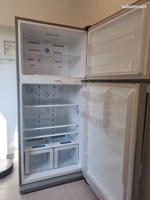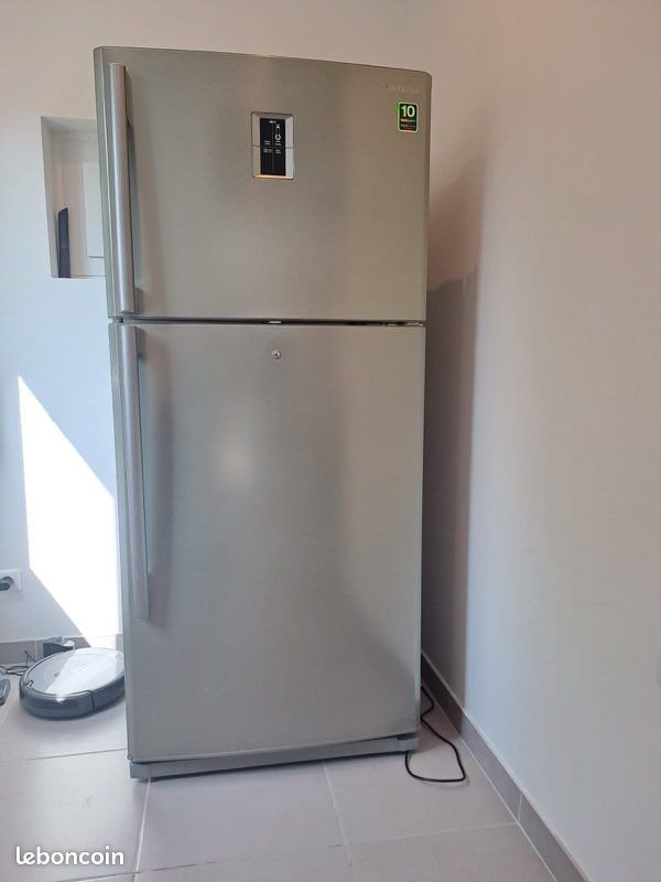 Ce frigo américain Samsung combine design moderne et fonctionnalité haut de gamme. Doté d’un distributeur intégré pour l’eau fraîche, les glaçons et la glace pilée, il offre un confort optimal au quotidien. Son système de froid ventilé No Frost assure une conservation homogène sans givre, et ses deux portes verticales permettent un accès rapide au réfrigérateur et au congélateur. Avec sa finition inox élégante, il s’intègre parfaitement dans une cuisine contemporaine, industrielle ou minimaliste. En très bon état, toutes les fonctions sont opérationnelles, et l’appareil est prêt à être installé sans aucun réglage particulier.