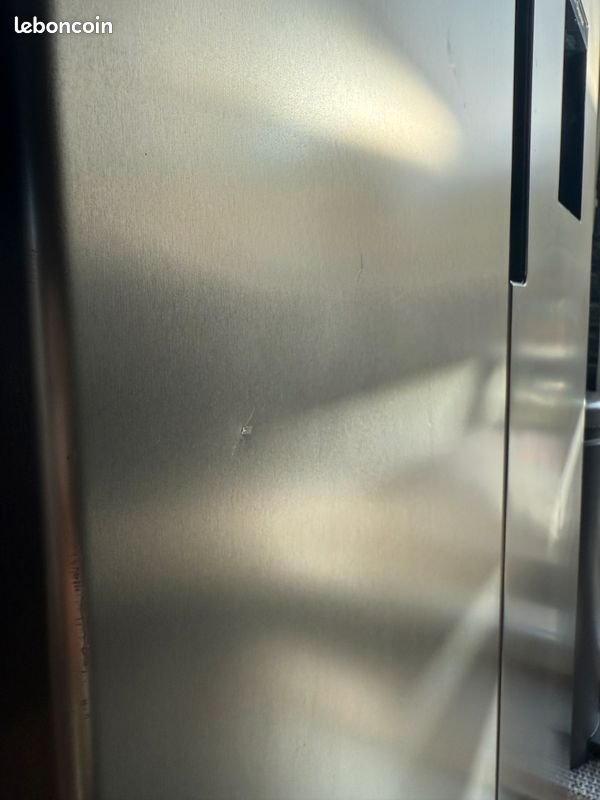Frigo américain LG, modèle side-by-side, en très bon état, avec de nombreuses fonctionnalités pratiques. La partie congélateur est équipée d’un distributeur d’eau, glaçons et glace pilée, idéal pour un usage quotidien. Il dispose également d’une trappe extérieure permettant d’accéder rapidement aux bouteilles sans ouvrir la porte, un vrai plus pour limiter les pertes de froid. À l’intérieur, le réfrigérateur est doté de 2 étagères en ardoise et 2 en verre trempé, offrant une organisation modulable et élégante. Le design en inox s’intègre parfaitement dans une cuisine moderne ou contemporaine, et sa capacité généreuse convient à une famille nombreuse, une colocation ou une résidence principale. Dimensions estimées : Hauteur 175 cm, Largeur 89 cm, Profondeur 72,5 cm