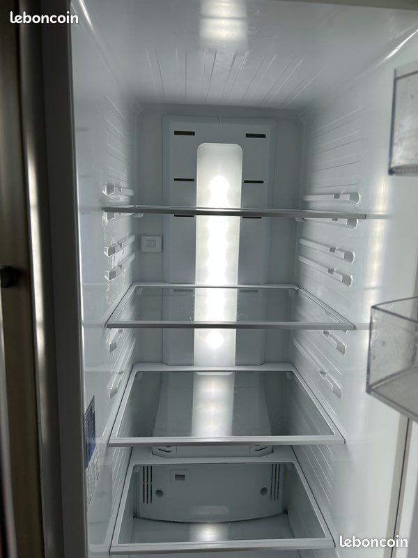 Frigo américain LG, modèle side-by-side, en très bon état, avec de nombreuses fonctionnalités pratiques. La partie congélateur est équipée d’un distributeur d’eau, glaçons et glace pilée, idéal pour un usage quotidien. Il dispose également d’une trappe extérieure permettant d’accéder rapidement aux bouteilles sans ouvrir la porte, un vrai plus pour limiter les pertes de froid. À l’intérieur, le réfrigérateur est doté de 2 étagères en ardoise et 2 en verre trempé, offrant une organisation modulable et élégante. Le design en inox s’intègre parfaitement dans une cuisine moderne ou contemporaine, et sa capacité généreuse convient à une famille nombreuse, une colocation ou une résidence principale. Dimensions estimées : Hauteur 175 cm, Largeur 89 cm, Profondeur 72,5 cm