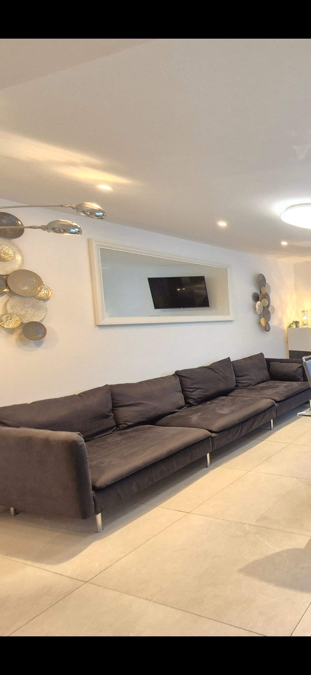 Canapé d’angle IKEA SÖDERHAMN 4 places, coloris gris foncé (Fridtuna), au design épuré et contemporain. Ce modèle offre une assise extra profonde et moelleuse, idéale pour les moments de détente en solo ou en famille. Les coussins de dossier souples assurent un excellent confort, et les pieds hauts apportent une touche aérienne à l’ensemble. Les différents modules sont entièrement modulables : vous pouvez les réorganiser selon la configuration de votre pièce (angle droit, angle gauche, linéaire…). La housse est lavable en machine, pratique pour un usage quotidien.
