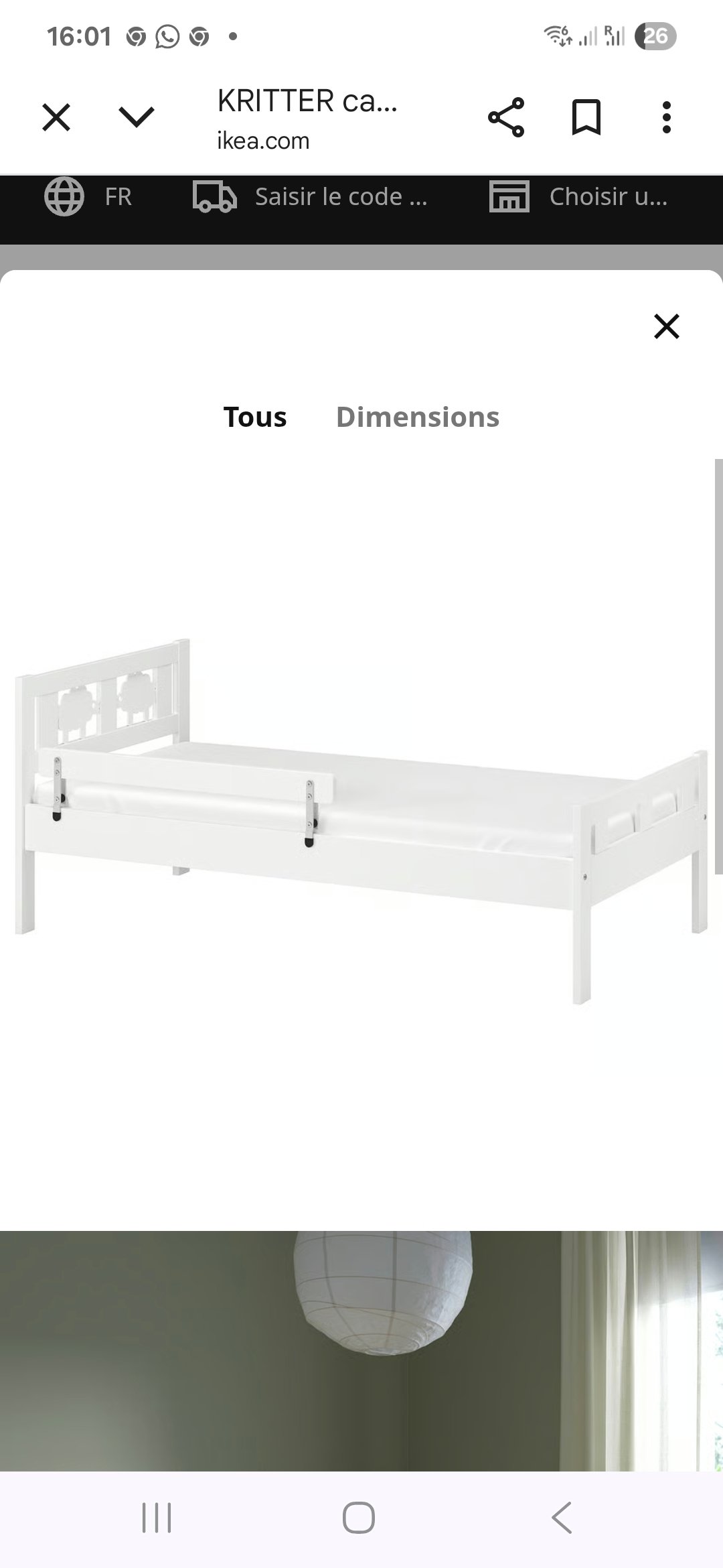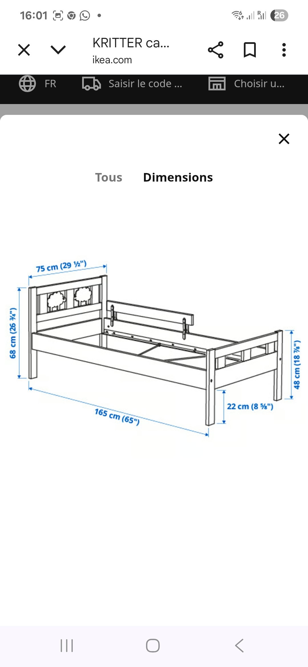 Lit enfant IKEA modèle KRITTER, coloris blanc, en excellent état. Vendu avec sommier à lattes et matelas inclus (160 × 70 cm), ce lit est prêt à l’emploi et parfaitement adapté pour une chambre d’enfant propre et bien entretenue. Avec ses lignes simples et ses petites barrières de sécurité intégrées, il convient aux enfants de 3 à 7 ans. Le cadre en bois peint offre une finition sobre et résistante, facile à intégrer dans une déco scandinave, minimaliste ou classique.