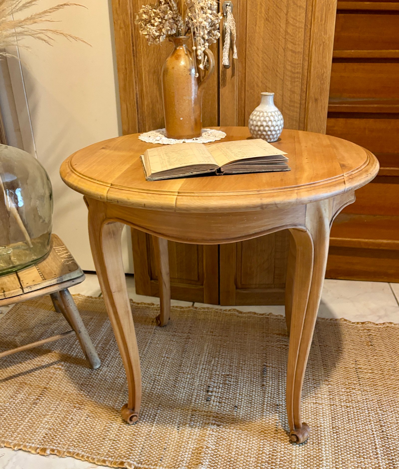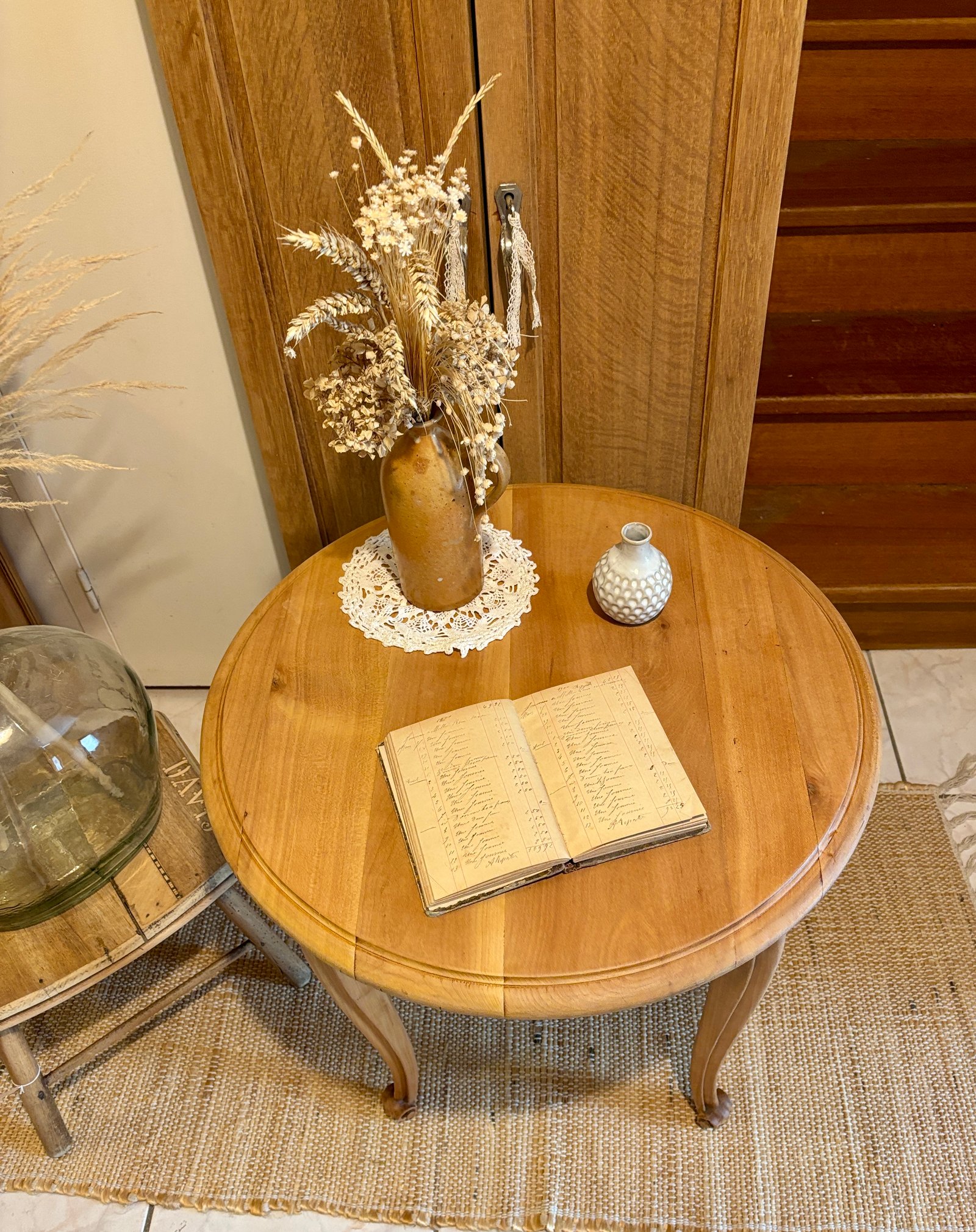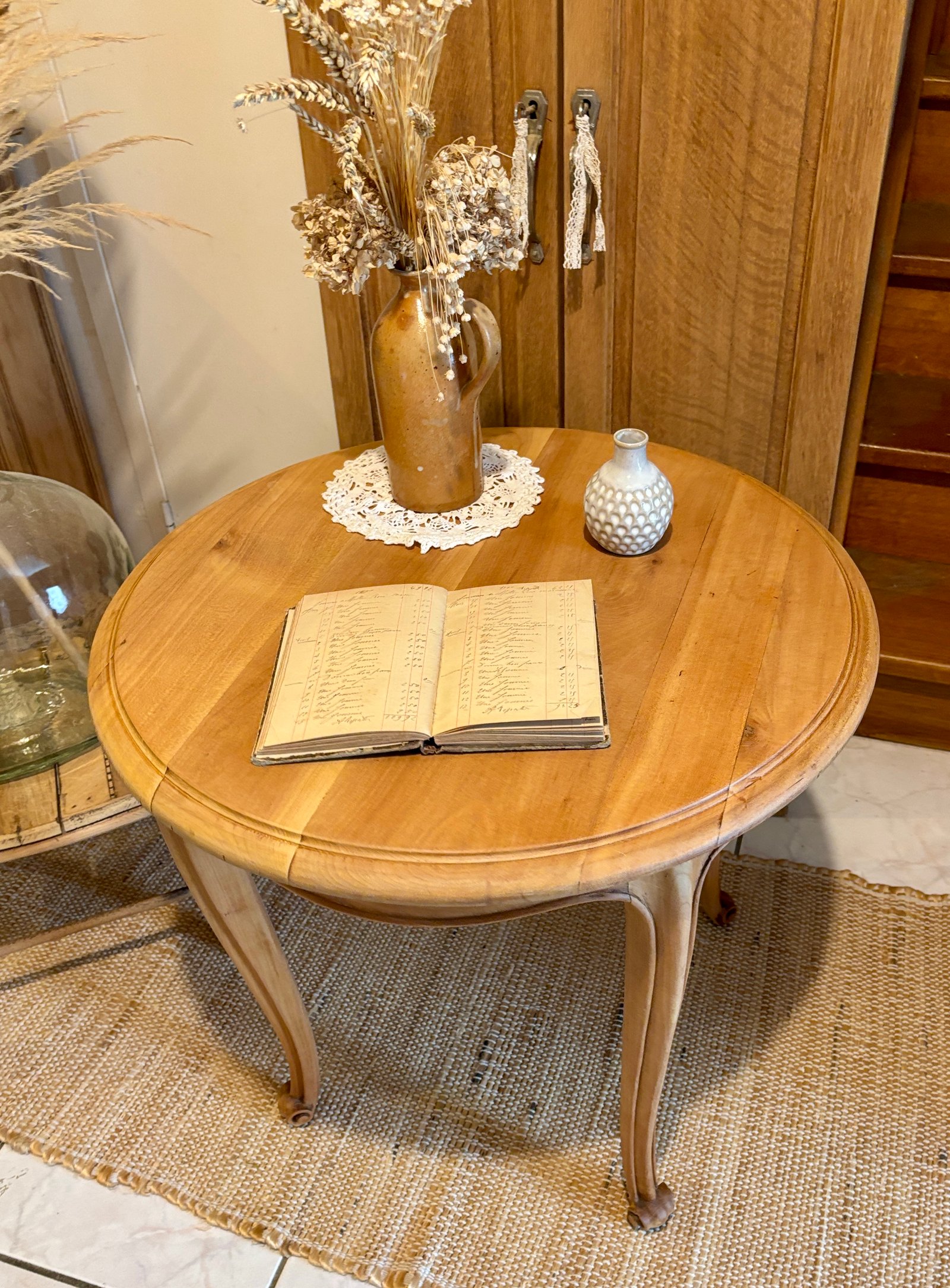 🌸 Petite Table Basse Ronde Vintage Sublimez votre intérieur avec cette adorable table basse en bois massif ! Son style intemporel et ses dimensions parfaites en font la pièce maîtresse idéale pour un coin salon cosy ou un espace restreint. • Bois Massif Une pièce de qualité, durable et pleine de cachet. • Pieds Galbés/Louis XV : Un design élégant et raffiné qui apporte une touche de douceur et de sophistication (voir photos). • Parfaitement adaptée aux petits espaces, studios, entrées, ou comme table d'appoint. • Une teinte de bois claire et lumineuse, facile à intégrer à tout style de décoration (bohème, campagne chic, vintage, scandinave...). 📐 Dimensions • Hauteur (H) : 56 cm • Diamètre (D) : 60 cm 🏡 Idéale pour : • Un coin lecture avec votre livre et tasse de thé préférés. Ne manquez pas cette pépite pour ajouter une touche de charme et d'histoire à votre maison !