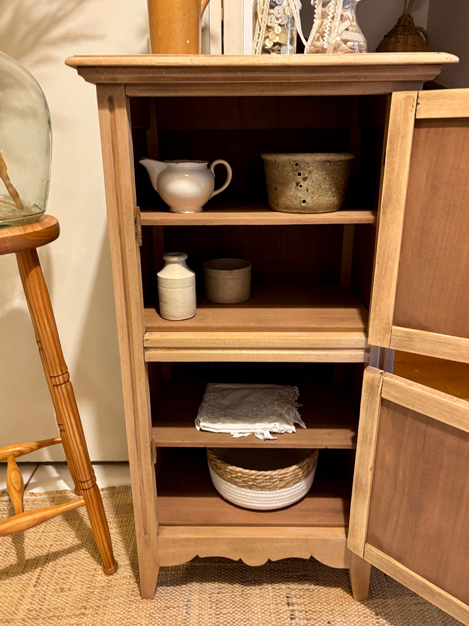 ✨ Petite Bonnetière Charmante : Le Meuble Qui Se Glisse Partout ! Elle est « trop craquante par sa taille »... et incroyablement pratique ! Voici une jolie petite bonnetière prête à adopter un nouveau foyer. Avec ses dimensions compactes, elle offre un maximum de rangement sans encombrer. Un atout charme indéniable pour toutes vos pièces ! Ses atouts en bref : • L'association de deux couleurs de bois lui donne beaucoup de caractère et de relief. • Deux portes et trois étagères intérieures parfaites pour les draps, la vaisselle, ou tout ce que vous voulez. • De jolies poignées coquille pour une touche d'élégance rustique. Ses Mensurations de Rêve (pour petits espaces) : • P38 cm • L50 cm • H94 cm 👉 Elle peut servir dans absolument toutes les pièces : meuble d'appoint dans l'entrée, rangement de linge de bain, petite bibliothèque dans le salon... Vous décidez !