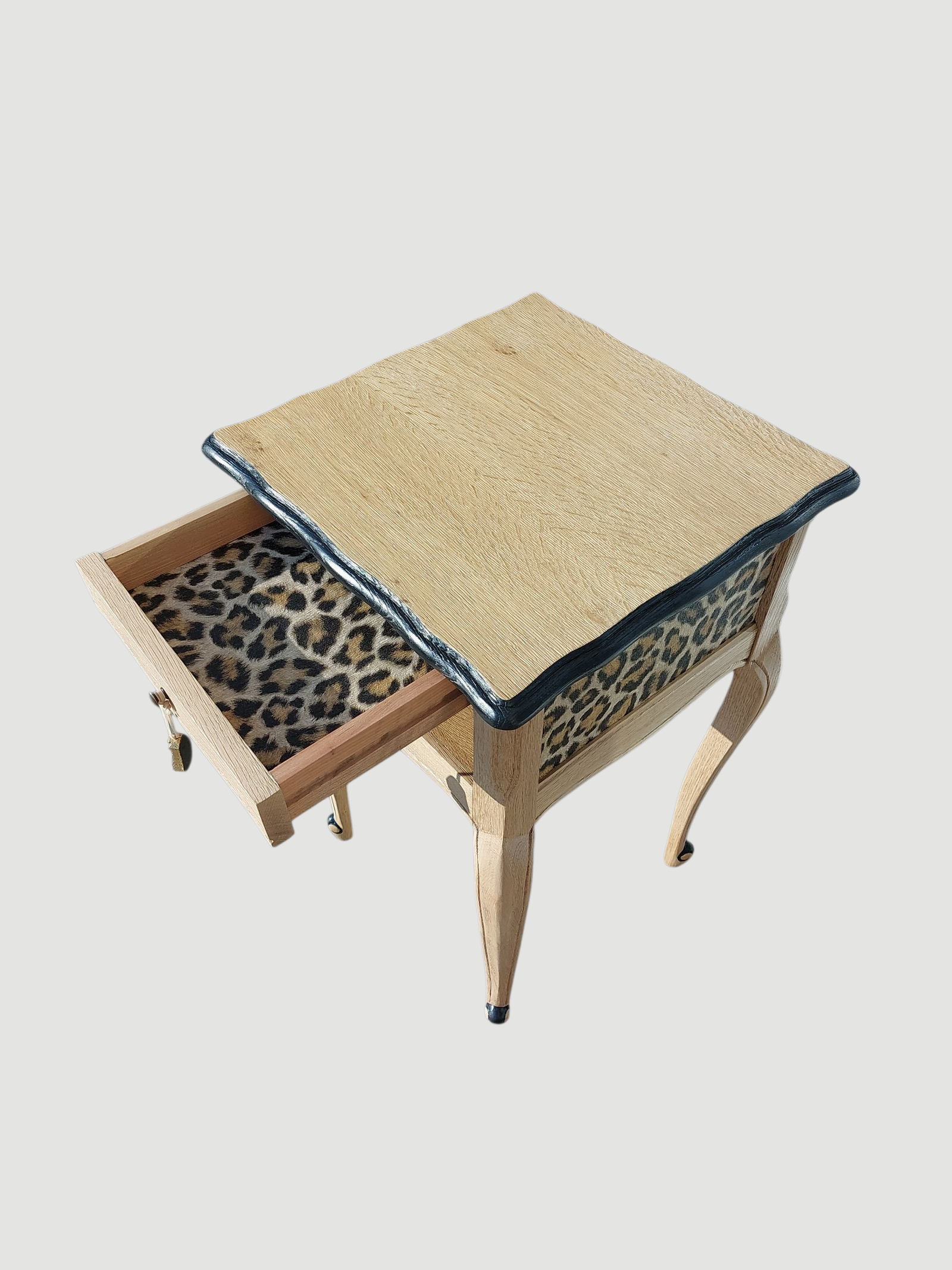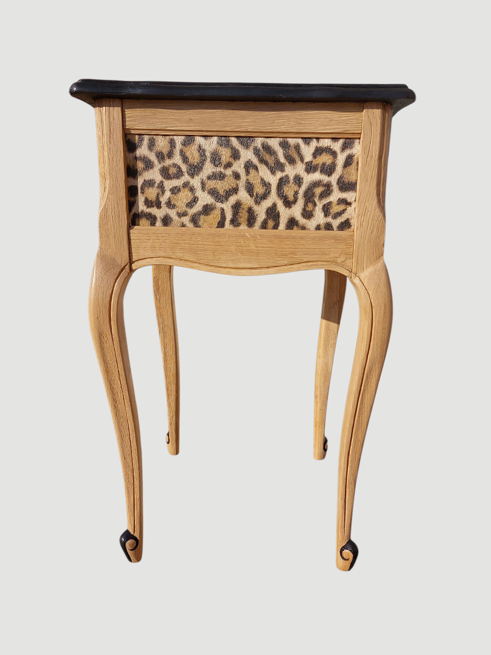 Une création unique et singulière pour un coin nuit qui laisse sa griffe ! Plus qu'un meuble pratique, ce chevet est une pièce HPD, à Haut Potentiel Décoratif ! Peut-être êtes-vous déjà tombé entre ses griffes ? Reconnaissable entre mille, l'imprimé léopard signe son grand retour dans l'univers de la décoration intérieure. Revisité de manière "chic", il peut sophistiquer un espace nuit tout en lui apportant une bonne dose d'originalité. Si vous n'en n'avez pas encore à la maison, cet ancien meuble téléphone est parfait pour adopter ce motif animalier qui ne laissera personne indifférent. Peu importe la fonction de l'espace, ce meuble s'introduit partout dans la maison, du salon à la chambre à coucher en passant par le bout de canapé. Chez vous, avec sa fantaisie qui bouscule les codes classiques, il donnera une touche décorative élégante et maitrisée. Faites la part belle à cet imprimé, une option efficace pour créer un effet spectaculaire et donner du tempérament à votre intérieur. Mon conseil : Pour réveiller la déco sans en faire trop, afin qu'elle reste harmonieuse, associez ce motif audacieux à des éléments plus neutres. On privilégiera donc des couleurs discrètes comme le beige pour un ensemble de lit. Dans un salon, il permettra de créer un effet grandiose mais pour éviter l'overdose, on fait contraster l'imprimé avec des couleurs claires. Et dans une chambre d'enfant, c'est idéal pour vivre plein d'aventures ! Ou créer un point focal dans l'entrée tout en rendant bien des services pour vider ses poches. Son petit plus ? Outre sa tapisserie safari beaucoup plus originale que les modèles traditionnels, ce petit meuble d'appoint oscille entre classique et modernité en faisant contrasté noir et bois. On adore ses lignes galbées rétro et on craque volontiers pour son style animalier plus contemporain.