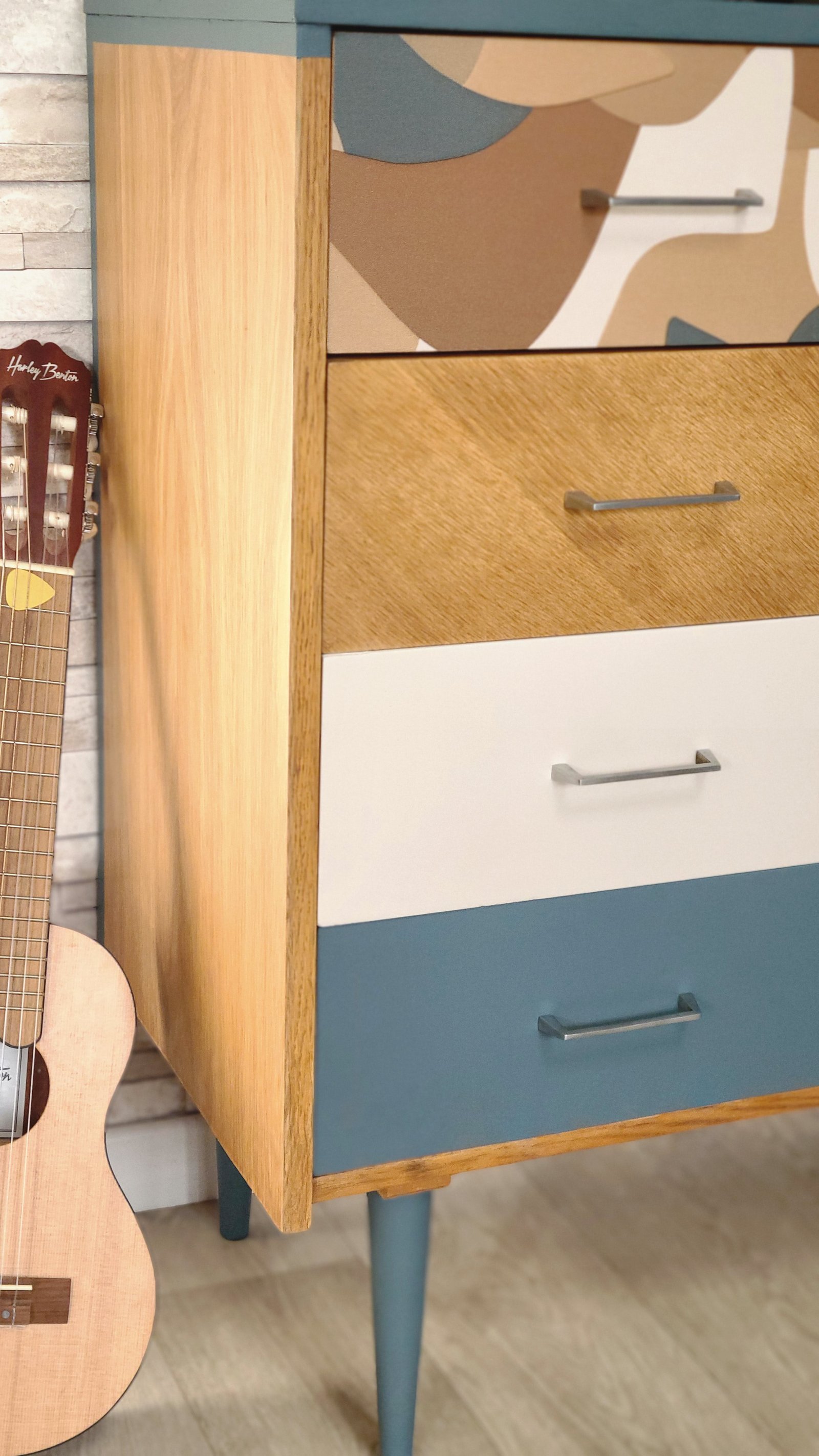 Neil, Découvrez la nouvelle création de la Mésange de Papier Upcycling, une pièce unique revalorisée. Cette commode, avec une hauteur de 86,5 cm, une largeur de 91 cm et une profondeur de 40 cm, est conçu pour apporter une touche de style à votre intérieur tout en respectant l'environnement. Ne manquez pas l'occasion de faire partie de ce mouvement upcycling et d'adopter un style de vie plus durable.