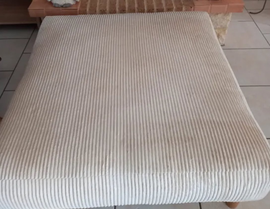 Canapé scandinave en velours côtelé beige, accompagné de son pouf assorti. Avec ses lignes épurées et son revêtement doux au toucher, il apporte une atmosphère chaleureuse et élégante à tout intérieur. Le canapé mesure 214 cm de longueur, 87 cm de profondeur et 40 cm de hauteur, offrant une assise confortable et spacieuse. Le pouf, de dimensions 90 × 90 cm et hauteur 40 cm, complète parfaitement l’ensemble pour un espace détente modulable. Les pieds sable apportent une touche naturelle et contemporaine, fidèle au style scandinave. En très bon état, ce mobilier est idéal pour un salon moderne, une ambiance cosy ou une pièce conviviale.