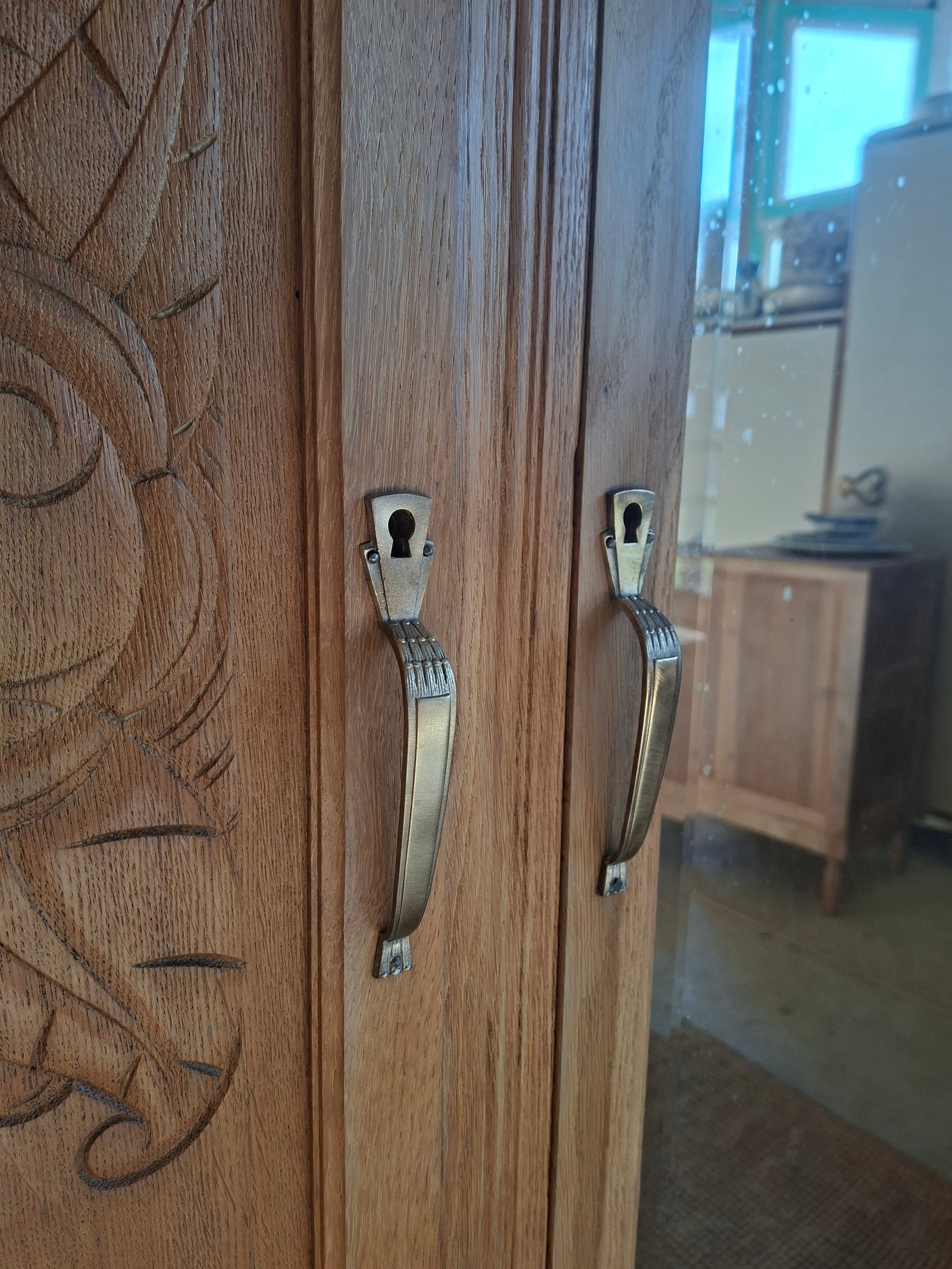 Magnifique armoire art deco Restaurée avec soin Armoire en chêne massif style art deco Trois grandes étagères Entièrement démontable Miroir legerement piquée Poignées d origine