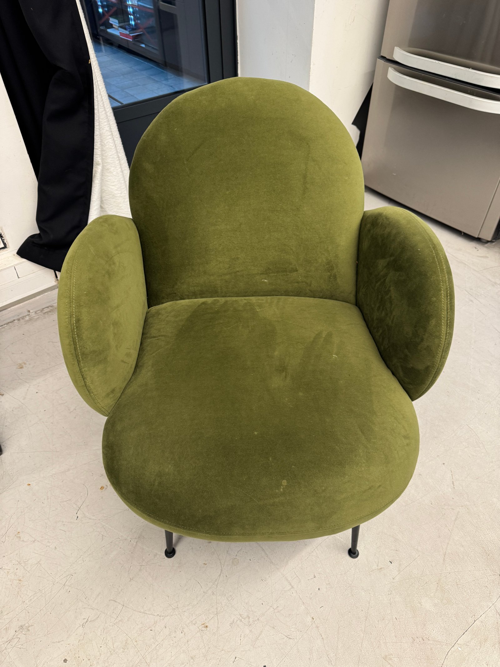 Je vends ce fauteuil Bonnie en velours kaki. - Type de produit : Fauteuil - Marque : Bonnie - Matériau : Velours - Couleur : Kaki - Pièce : Salon Très bon état N'hésitez pas à me contacter pour plus d'informations ou de photos.