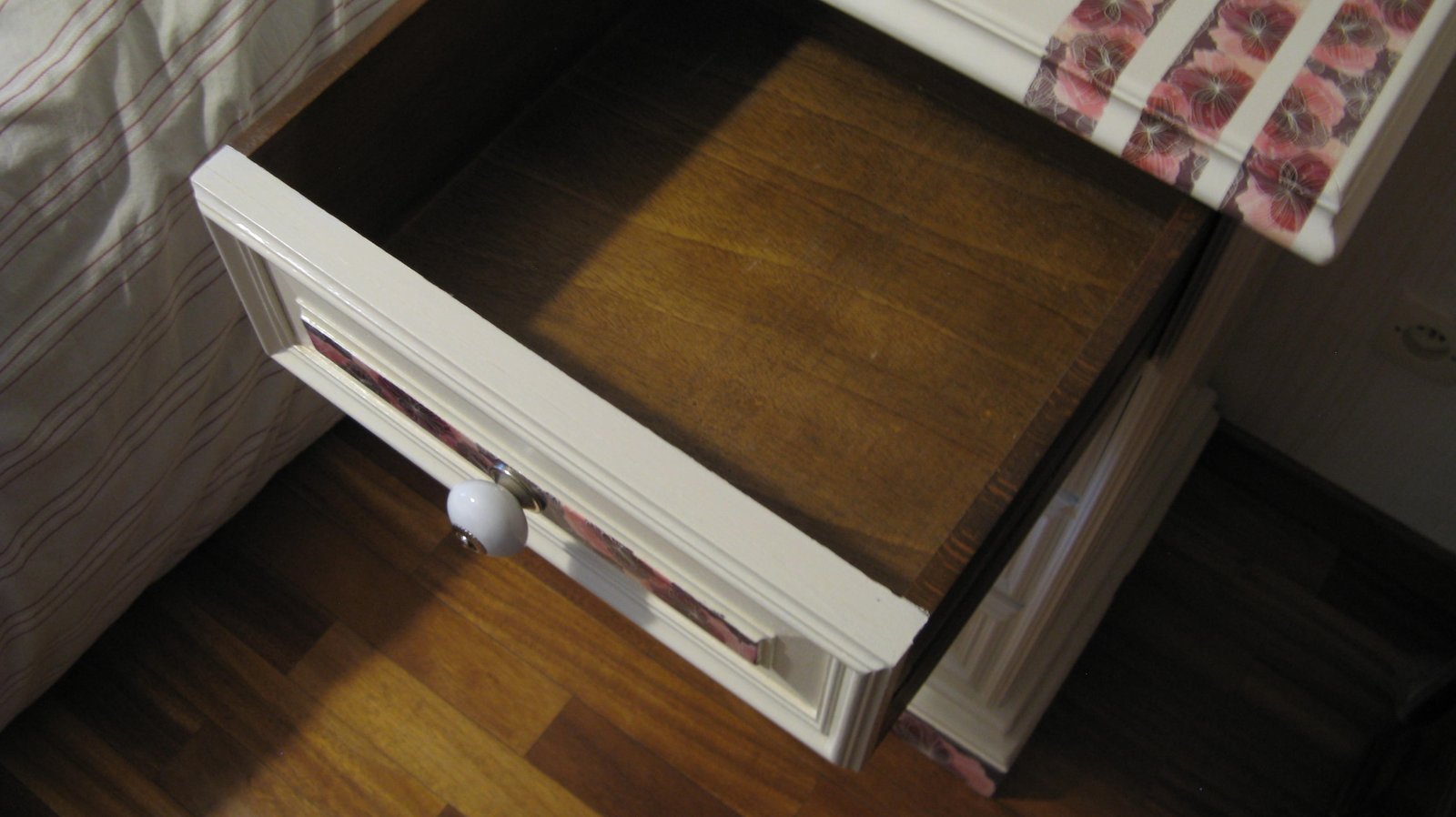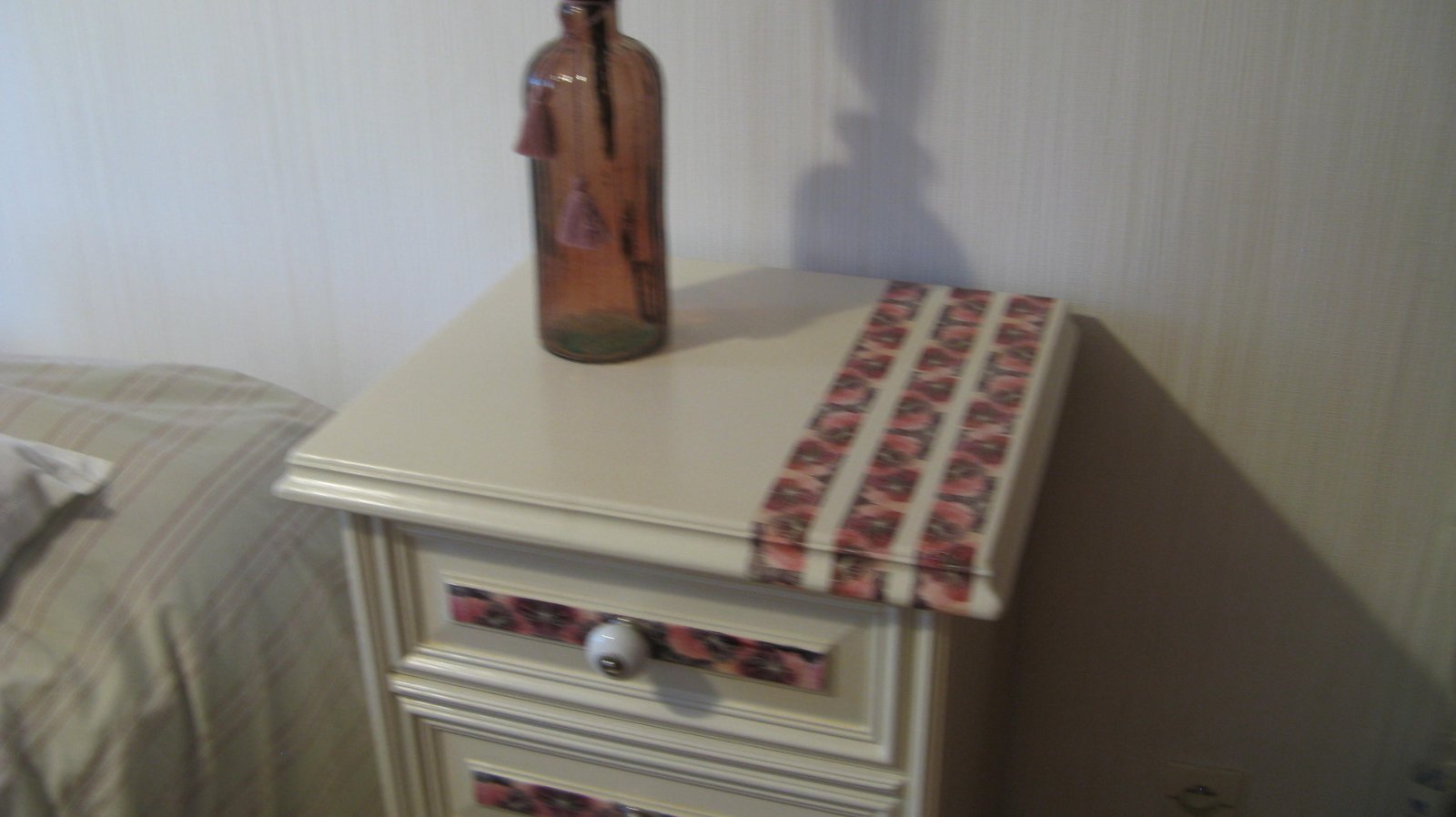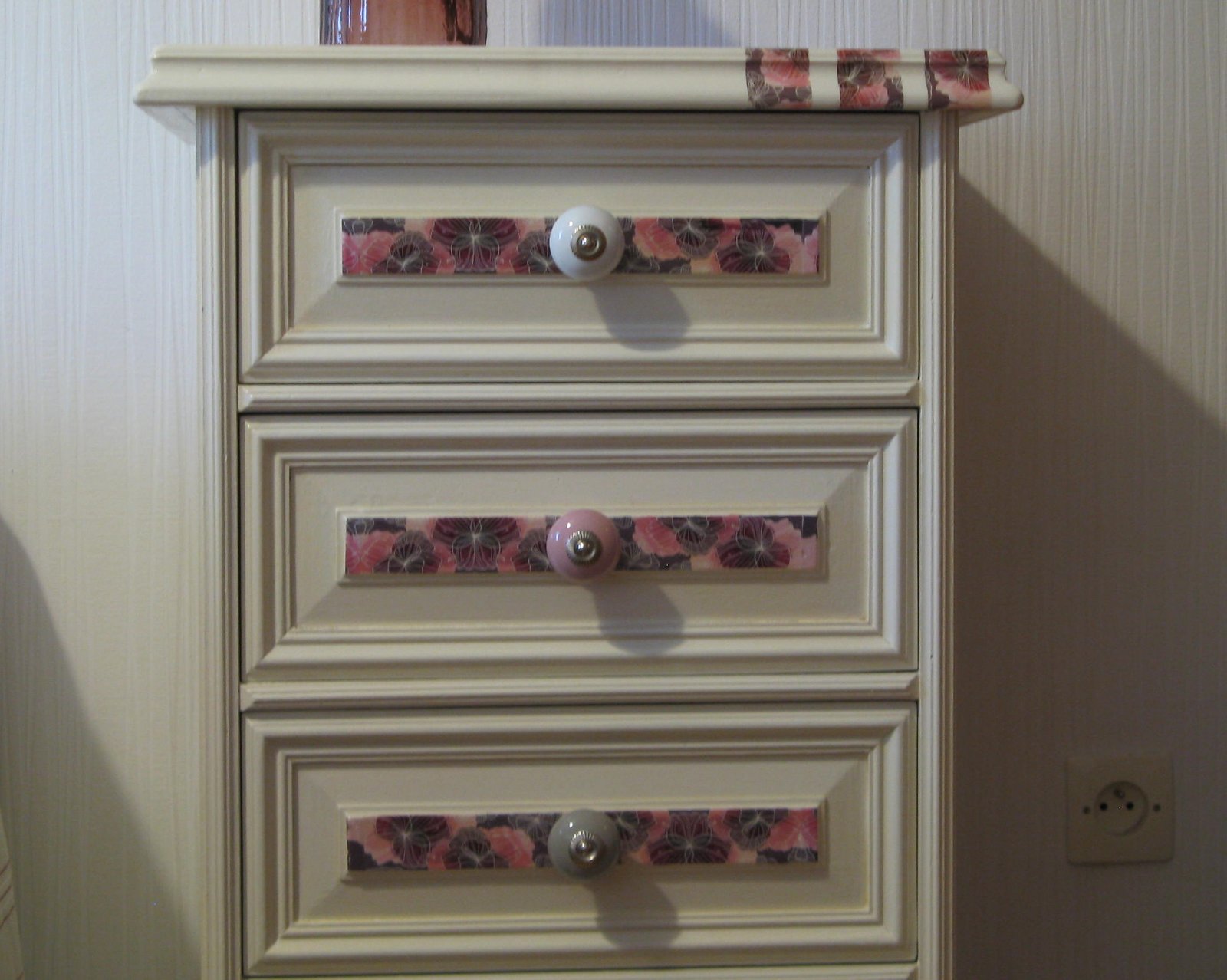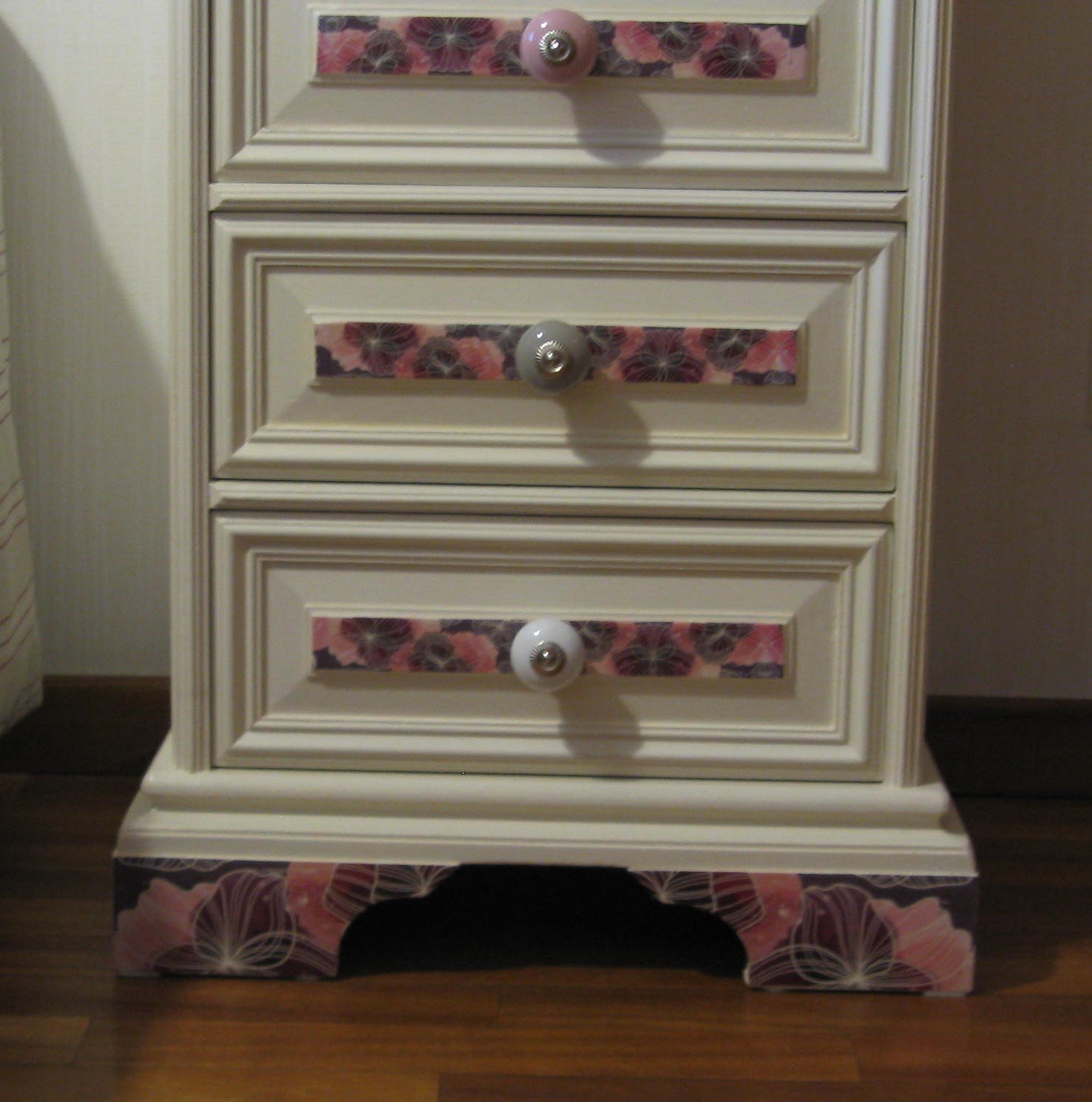 Très pratique le meuble chiffonnier qui peut trouver sa place dans de nombreux endroits. Sa silhouette filiforme lui permet de se glisser facilement dans un petit espace. Ses 4 tiroirs spacieux (Hauteur : 13 cm /Profondeur : 32 cm /Largeur : 35 cm) lui procurent une grande capacité de rangement. Ses gros boutons en céramique lui donne bonne mine. Sa teinte lin, ses boutons en céramique et son habit floral violet et rose apporteront une touche de fraîcheur et d'originalité à votre pièce. Elle peut aussi servir de chevet. Dimensions du meuble : Hauteur : 80 cm Profondeur : 43 cm Largeur : 49 cm