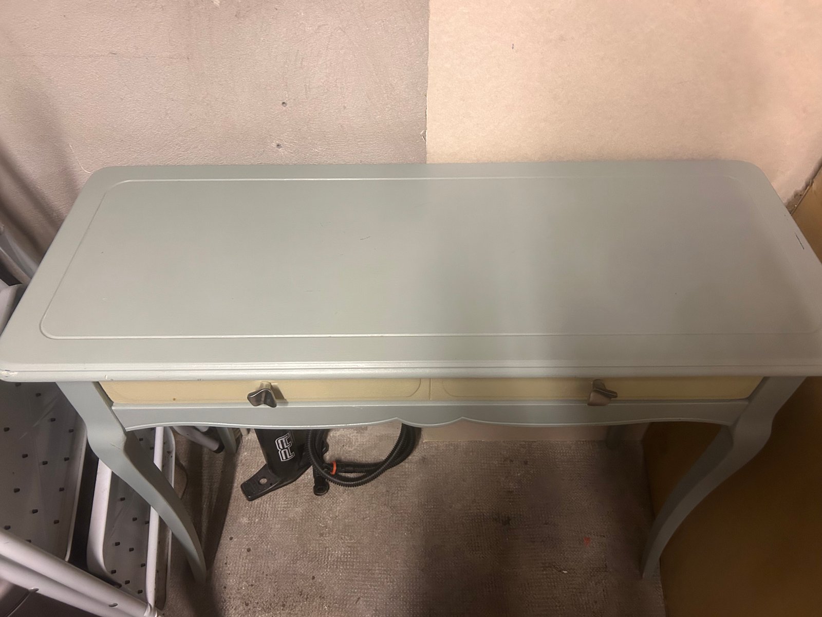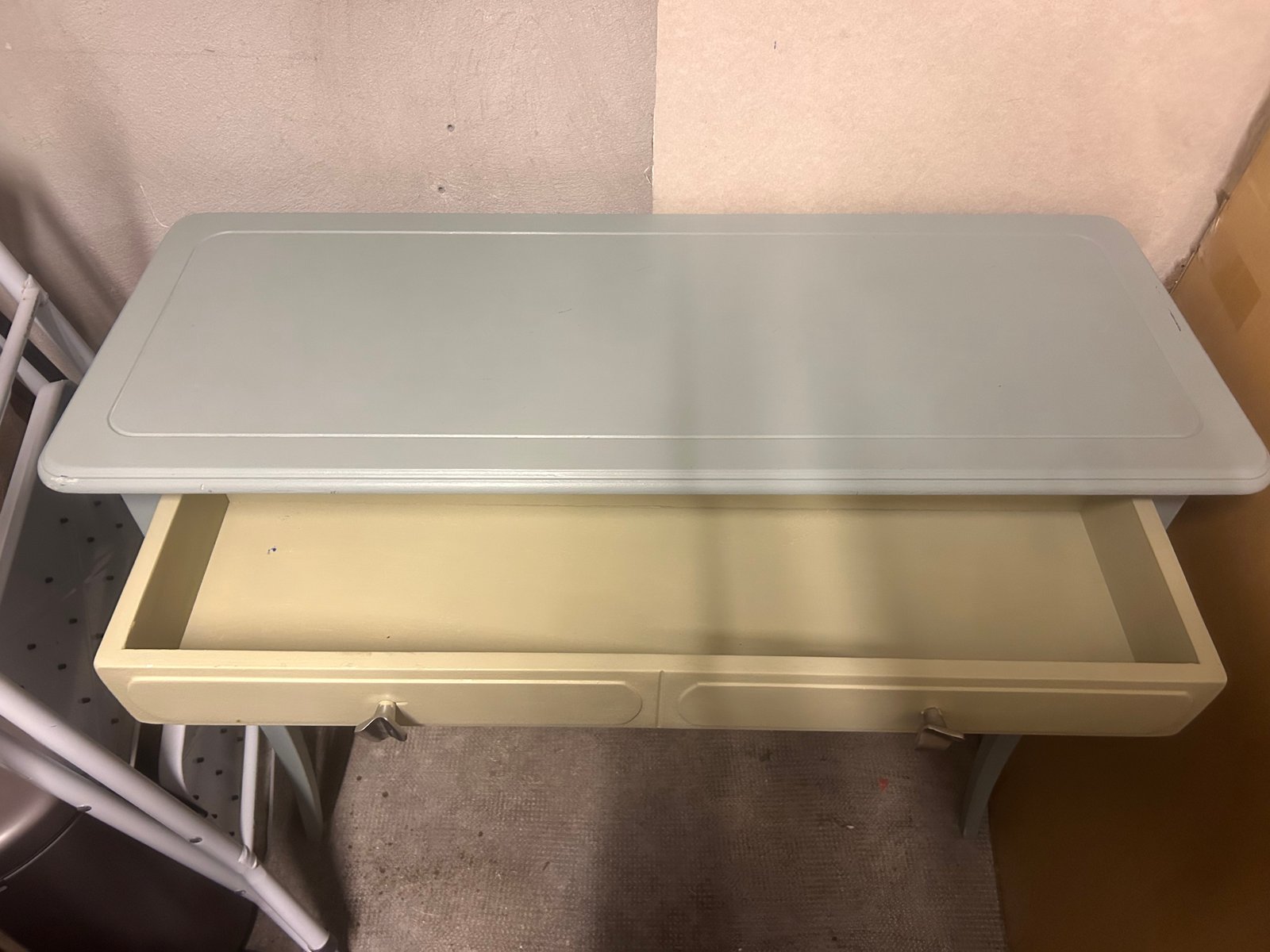 Je vends ce meuble d’entrée ou pour toutes autres utilisations, avec un grand tiroir. Repeinte en vert eucalyptus et vert tilleul il me reste la peinture donc je peux la donner avec pour lui redonner un coup Dimensions Longueur 100cm Largeur 40cm Hauteur 80cm