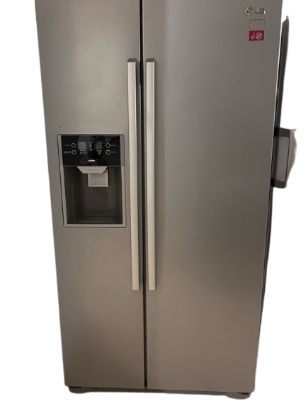 Réfrigérateur américain LG en inox, modèle GW‑L2111SL. Il offre une grande capacité totale de 508 litres, idéale pour une famille ou une grande cuisine. Le réfrigérateur se trouve à droite et le congélateur à gauche, avec un agencement très pratique et un froid ventilé intégral qui assure une conservation optimale. Le distributeur intégré permet d’obtenir facilement de l’eau fraîche et des glaçons. L’appareil dispose également d’un affichage LED, d’un contrôle électronique précis de la température et d’un système No Frost qui évite totalement la formation de givre. Son design inox moderne s’intègre parfaitement dans tout type d’intérieur. Le frigo est fonctionnel et en bon état général, avec quelques traces d’usage normales qui n’affectent en rien son fonctionnement.