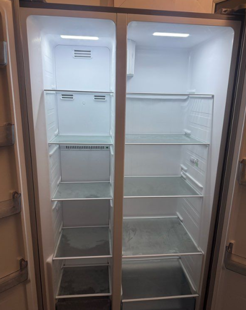 Réfrigérateur américain Gorenje gris en très bon état, avec double porte et une grande capacité de rangement idéale pour une famille ou pour ceux qui aiment organiser facilement leurs aliments. Sa couleur gris métal et sa finition moderne s’intègrent parfaitement dans une cuisine contemporaine. L’intérieur est particulièrement spacieux, avec de nombreuses étagères et balconnets, offrant un large volume aussi bien côté réfrigérateur que congélateur. Le distributeur d’eau et de glaçons en façade apporte un vrai confort d’utilisation au quotidien, et le système No Frost garantit un fonctionnement sans givre et un entretien simplifié. Propre, fiable et bien entretenu, ce frigo américain est parfait pour un usage quotidien ou une grande cuisine familiale.