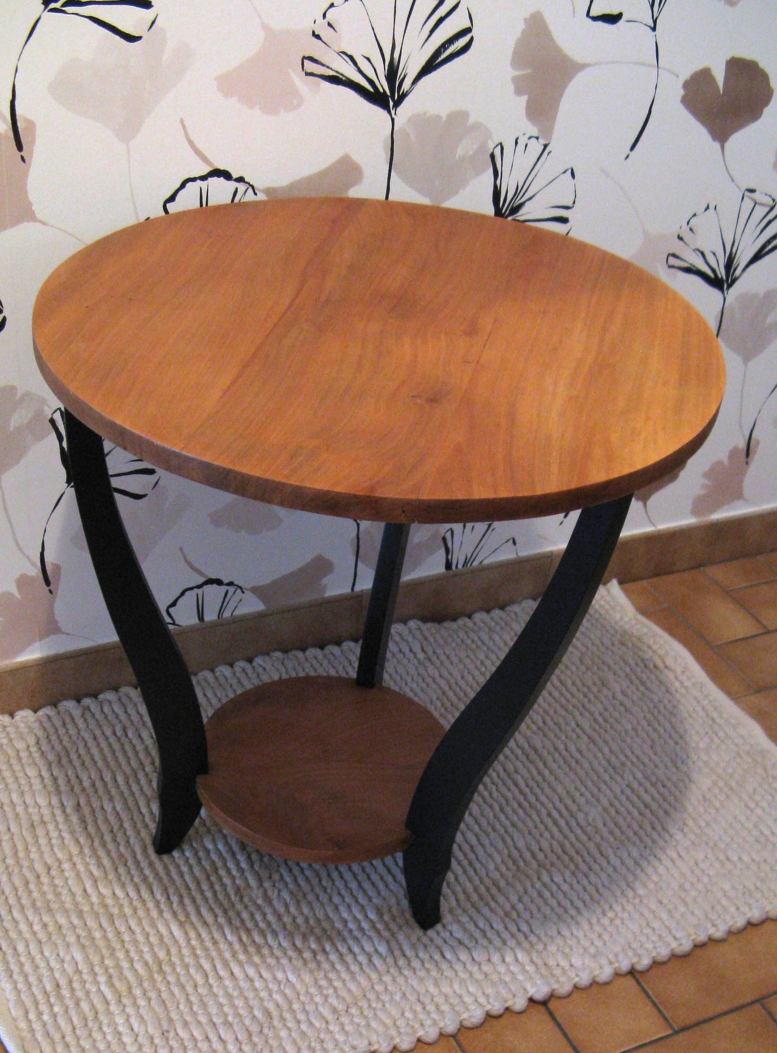 Une jolie petite table en bois massif relookée de manière simple et chic. Ses pieds joliment galbés nous rappellent ses origines vintages et ses teintes intemporelles nous à notre époque. Elle trouvera sa place facilement dans votre intérieur. Dimensions : 62,5 cm de diamètre et 66 cm de haut