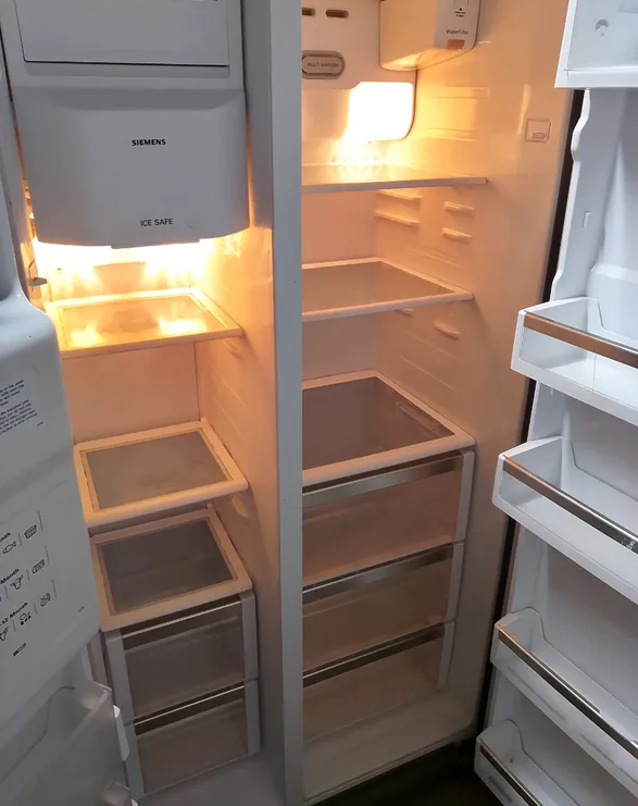 Réfrigérateur américain Siemens en aluminium brossé, toujours branché et parfaitement fonctionnel, idéal pour une cuisine moderne grâce à son design soigné et son froid ventilé complet pour le frigo comme pour le congélateur. Le panneau digital permet un contrôle précis de la température par côté, et le distributeur d’eau, glaçons et glace pilée offre un vrai confort d’utilisation. La cartouche d’eau est neuve, la machinerie à glaçons est complète, et le frigo est vendu avec son tuyau de raccordement. Les dimensions 184 × 90 × 70 cm en font un appareil spacieux, pratique pour une famille ou pour ceux qui recherchent un grand volume de stockage. L’ensemble est propre, entretenu et prêt à l’emploi, avec une finition aluminium brossé qui s’intègre facilement dans une cuisine contemporaine.