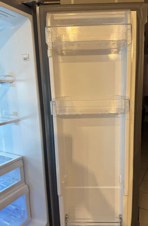 Réfrigérateur américain LG GW‑P3213AC, fiable, fonctionnel et idéal pour une famille ou toute personne ayant besoin d’une grande capacité de stockage. Avec son volume généreux et son agencement bien pensé, il offre un accès rapide et pratique à tous les aliments. Le congélateur vertical permet de visualiser d’un coup d’œil l’ensemble des produits congelés, tandis que les nombreux rangements sur les portes facilitent l’organisation du quotidien. La trappe d’accès rapide est un vrai plus pour attraper les essentiels sans ouvrir toute la porte, très pratique en cuisine. Le congélateur descend jusqu’à –23 °C et le réfrigérateur jusqu’à 0 °C, assurant une conservation optimale. L’appareil fonctionne parfaitement, malgré quelques défauts esthétiques et traces d’usure qui n’affectent en rien son utilisation.