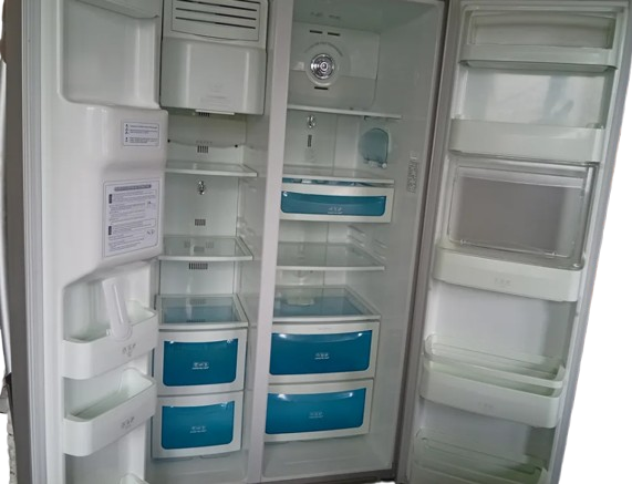 Réfrigérateur américain LG GW‑P3213AC, fiable, fonctionnel et idéal pour une famille ou toute personne ayant besoin d’une grande capacité de stockage. Avec son volume généreux et son agencement bien pensé, il offre un accès rapide et pratique à tous les aliments. Le congélateur vertical permet de visualiser d’un coup d’œil l’ensemble des produits congelés, tandis que les nombreux rangements sur les portes facilitent l’organisation du quotidien. La trappe d’accès rapide est un vrai plus pour attraper les essentiels sans ouvrir toute la porte, très pratique en cuisine. Le congélateur descend jusqu’à –23 °C et le réfrigérateur jusqu’à 0 °C, assurant une conservation optimale. L’appareil fonctionne parfaitement, malgré quelques défauts esthétiques et traces d’usure qui n’affectent en rien son utilisation.