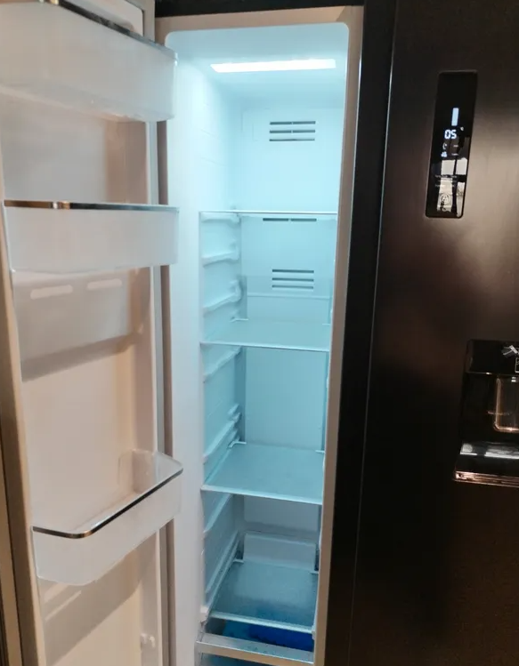 Ce réfrigérateur américain Saba SBS5621WDDK offre un volume généreux de 559 L, parfait pour une famille ou pour ceux qui aiment stocker en grande quantité. Sa couleur noire et son design moderne s’intègrent facilement dans une cuisine contemporaine. Le froid ventilé No Frost garantit une conservation homogène sans givre, et l’appareil dispose d’un distributeur d’eau pratique ainsi que d’un affichage digital pour un réglage précis. L’état est réellement neuf : utilisé seulement 8 mois, il fonctionne parfaitement et l’intérieur est impeccable. Ce modèle convient aussi bien pour un usage familial que pour une colocation ou une cuisine ouverte, grâce à son format américain et ses rangements spacieux.