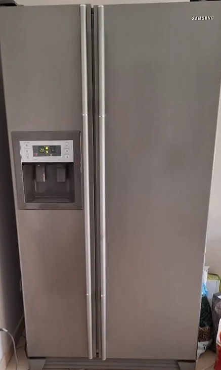 Réfrigérateur américain Samsung gris/inox en très bon état, entièrement fonctionnel et prêt à l’emploi. Son format côte à côte offre une grande capacité de rangement, idéale pour une famille ou pour ceux qui aiment stocker boissons, fruits, légumes et surgelés. La finition inox apporte un style moderne qui s’intègre facilement dans une cuisine contemporaine. L’appareil est propre, bien entretenu, silencieux et conçu en matériaux robustes, avec un froid performant et régulier. Le distributeur d’eau fraîche et de glaçons ajoute un vrai confort d’usage au quotidien, parfait pour recevoir ou pour une utilisation intensive. Un réfrigérateur américain fiable, spacieux et élégant, adapté à tous les styles de cuisine et à de nombreuses occasions.