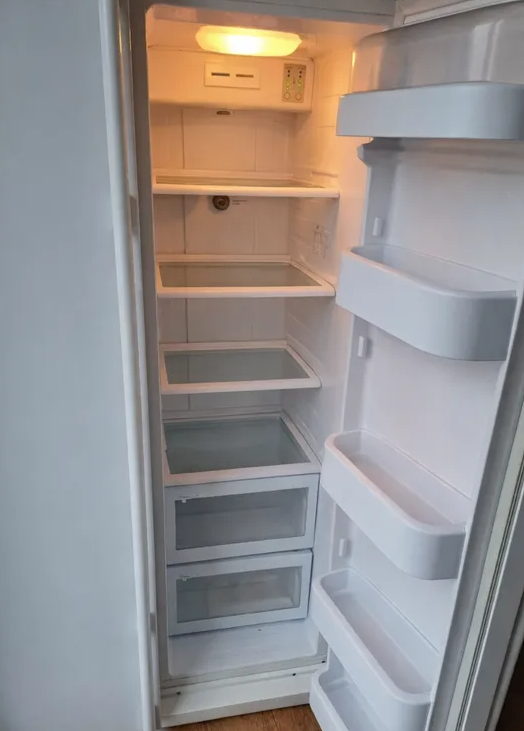 Réfrigérateur américain LG GW‑P3213AC, fiable, fonctionnel et idéal pour une famille ou toute personne ayant besoin d’une grande capacité de stockage. Avec son volume généreux et son agencement bien pensé, il offre un accès rapide et pratique à tous les aliments. Le congélateur vertical permet de visualiser d’un coup d’œil l’ensemble des produits congelés, tandis que les nombreux rangements sur les portes facilitent l’organisation du quotidien. La trappe d’accès rapide est un vrai plus pour attraper les essentiels sans ouvrir toute la porte, très pratique en cuisine. Le congélateur descend jusqu’à –23 °C et le réfrigérateur jusqu’à 0 °C, assurant une conservation optimale. L’appareil fonctionne parfaitement, malgré quelques défauts esthétiques et traces d’usure qui n’affectent en rien son utilisation.