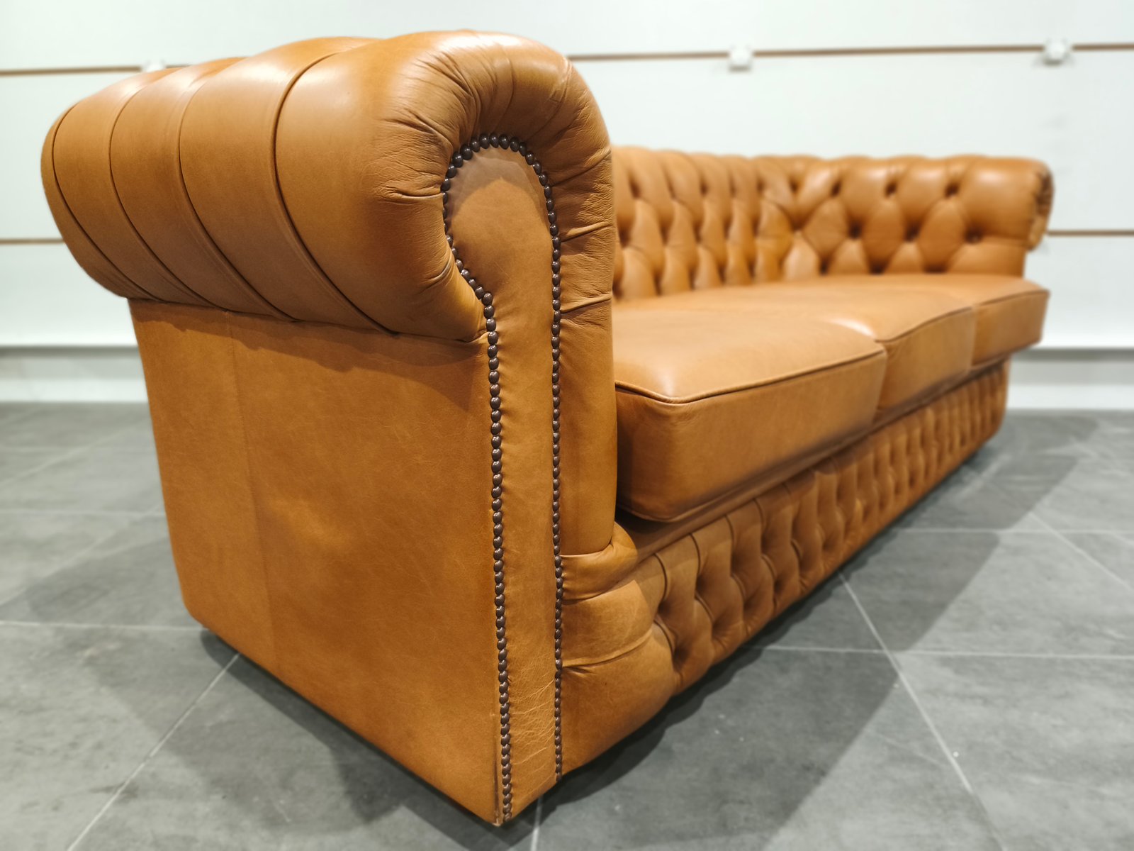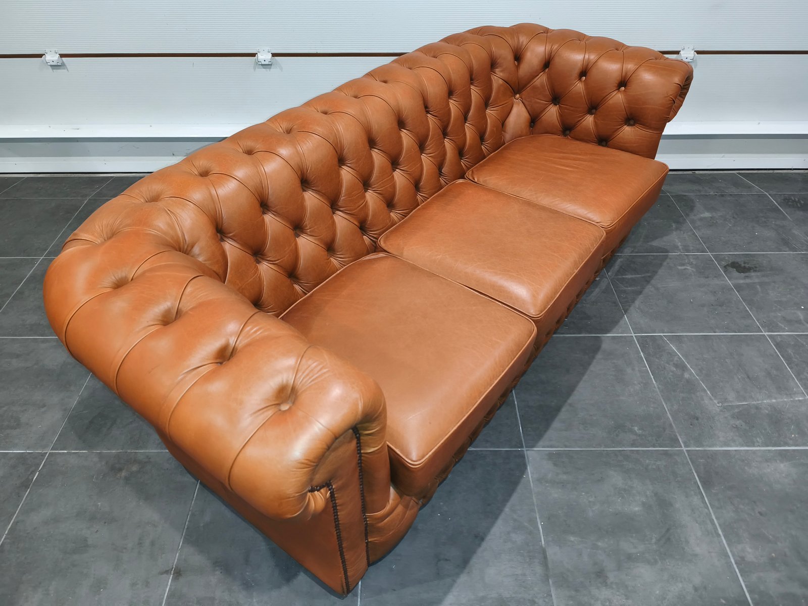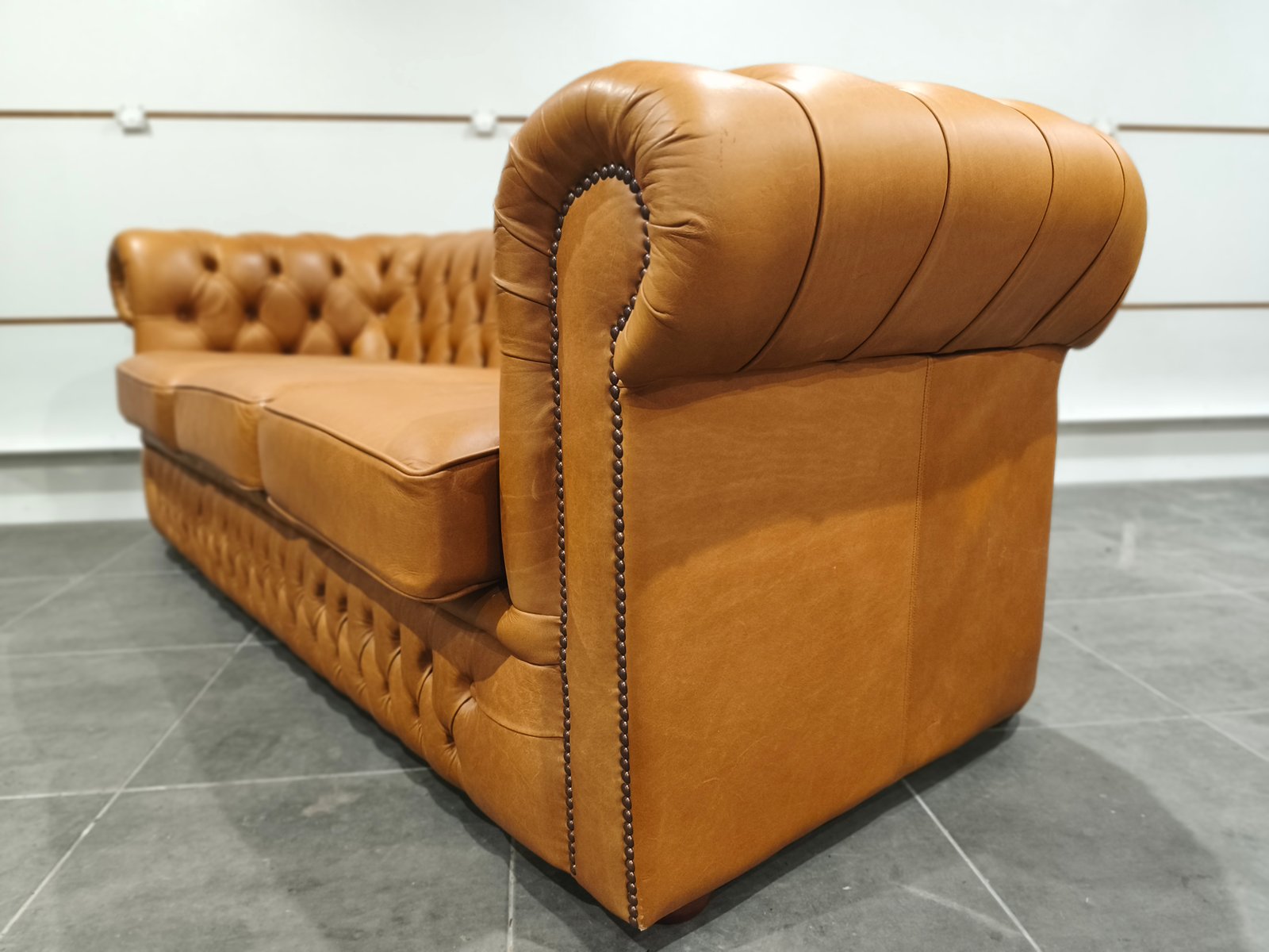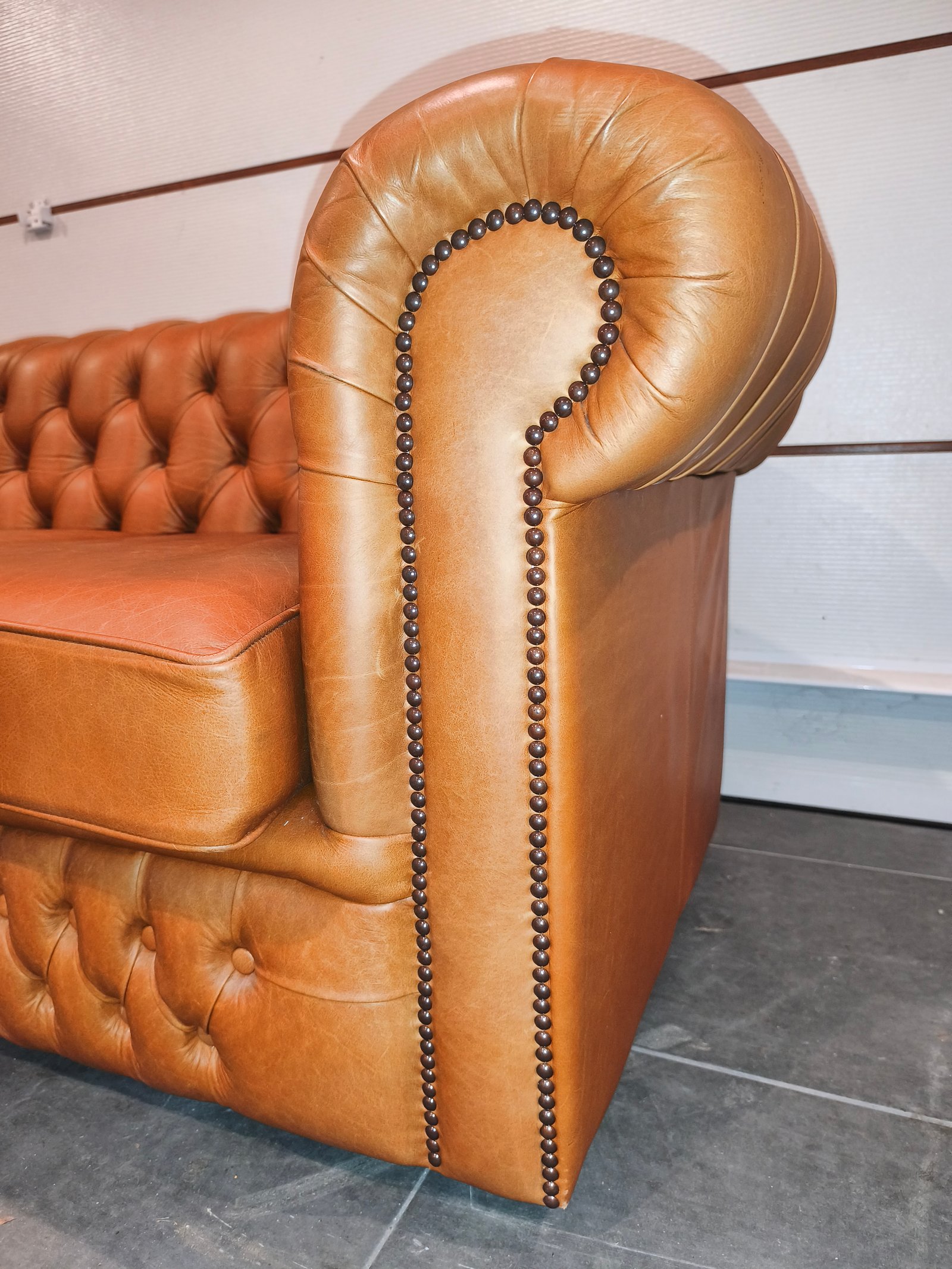 Je vend mon exceptionnel canapé chesterfield 3 places. Très beau style anglais de très grande qualité en cuir vache pleine fleur, patiné main de coloris jaune Vénitien et marron Alezan, suivant le type d'éclairage utilisé (lumière naturelle ou tamisée : l'ensemble des photos est réalisé avec ces deux types de lumières, afin de vous montrer la différence de teinte suivant l'éclairage). Ce canapé Chesterfild est totalement comme neuf puis qu'il n'a presque jamais servi : Aucun bouton ou clou manquant, aucune déchirure, aucune coupure : Le cuir est partout en très bon état. Il a toujours été très bien nourri avec de la crème : souple et très belle patine. Je suis non fumeur et sans animaux. Partie noble du cuir, laissant apparaître les caractéristiques de la peau et le grain. Montage entièrement réalisée sur ressorts et assise rembourrée. Dossier totalement capitonnés et assise composé de larges coussin : La classe du Chesterfield et le confort d'un canapé classique. Finition passepoil et cloutage à l'ancienne (accoudoirs). Dimension extérieure canapé : L205 x P92 x H79 Dimension assise canapé : L158 x P56 x H50 Plus de photos sur demande. Ce canapé a été acheté neuf plus de 3000 € neuf ; je le revend seulement 870 euros, soit moins d'1/3 de son prix neuf, alors qu'il est totalement comme neuf. Ce canapé est identifiable dans des films anglais et américains comme Peaky blinders ou House of cards ou Sherlock holmes ou crown ou des films de Mafia comme scarface ou Le parrain. Il sera idéal pour une pub anglais ou irlandais ou un restaurant ou un bar à vin ou une maison close ou une écurie ou centre équestre en mode Thomas Shelby ou château ou hôte particulier ou maison d'hôtel. Style red light district vintage loft industriel indus vintage rétro ancien déco riche classe ancien vieux décoration luxure atelier cheval noble