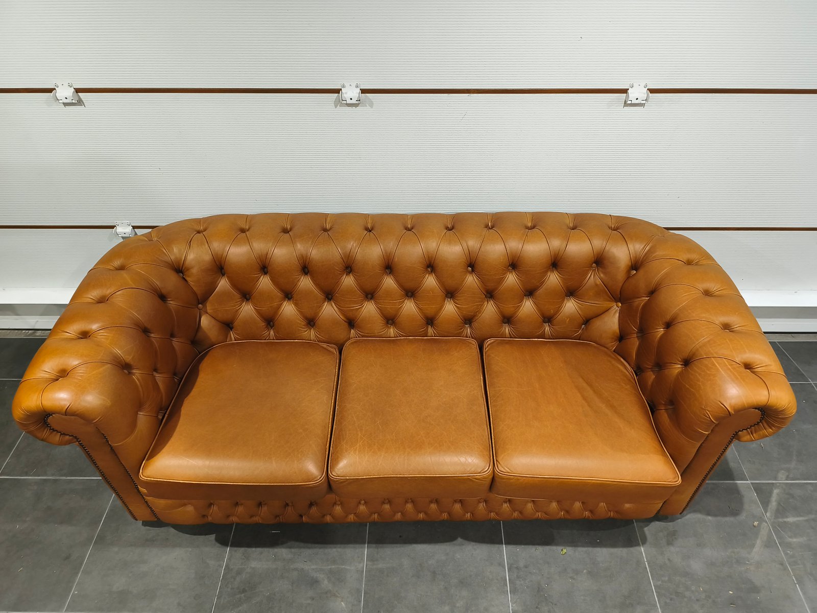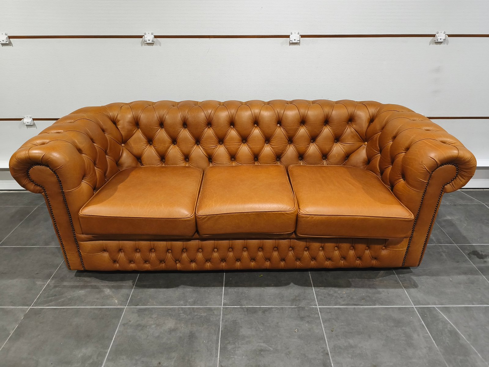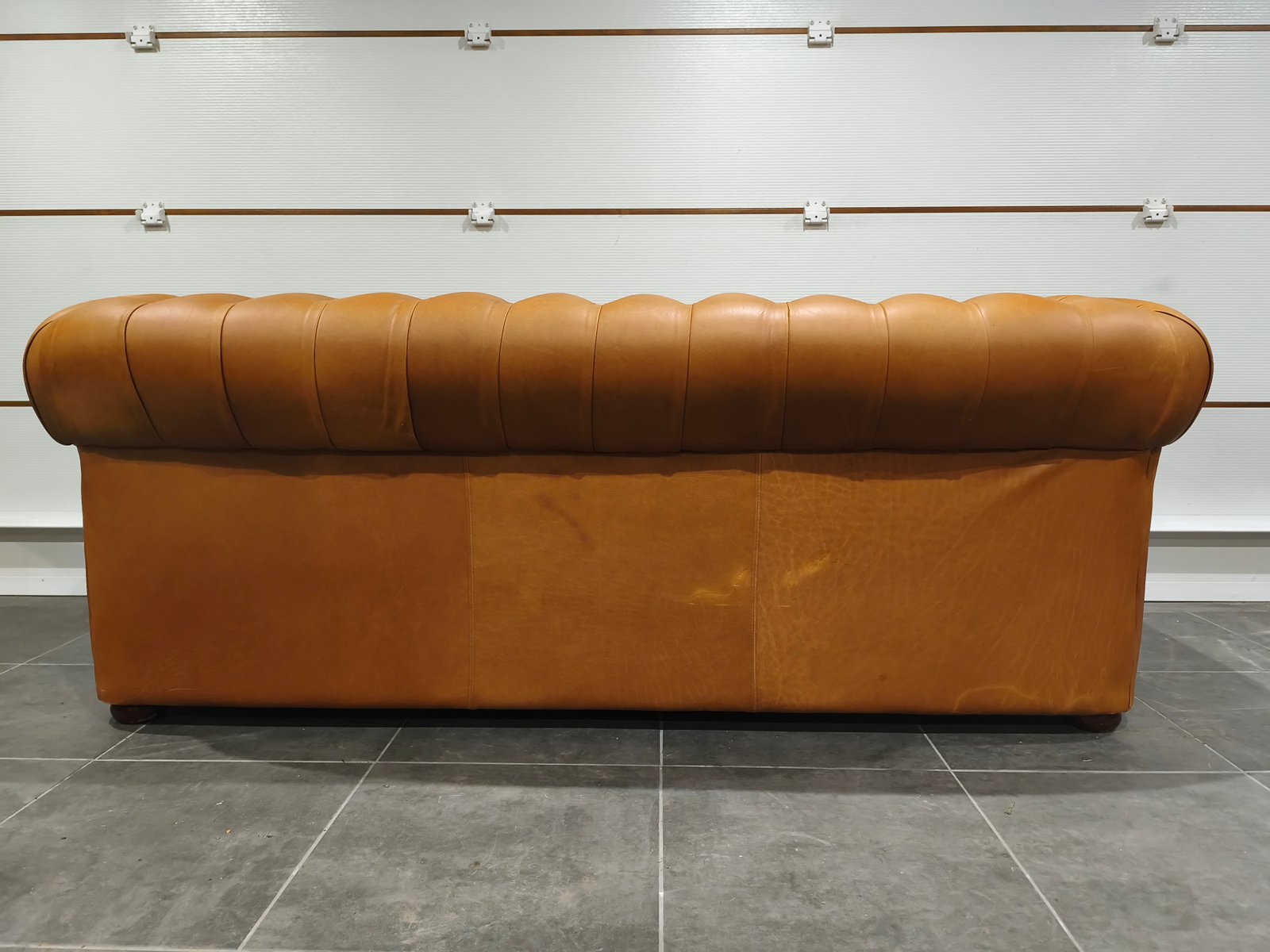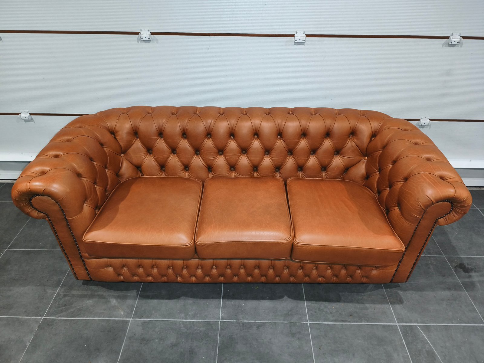 Je vend mon exceptionnel canapé chesterfield 3 places. Très beau style anglais de très grande qualité en cuir vache pleine fleur, patiné main de coloris jaune Vénitien et marron Alezan, suivant le type d'éclairage utilisé (lumière naturelle ou tamisée : l'ensemble des photos est réalisé avec ces deux types de lumières, afin de vous montrer la différence de teinte suivant l'éclairage). Ce canapé Chesterfild est totalement comme neuf puis qu'il n'a presque jamais servi : Aucun bouton ou clou manquant, aucune déchirure, aucune coupure : Le cuir est partout en très bon état. Il a toujours été très bien nourri avec de la crème : souple et très belle patine. Je suis non fumeur et sans animaux. Partie noble du cuir, laissant apparaître les caractéristiques de la peau et le grain. Montage entièrement réalisée sur ressorts et assise rembourrée. Dossier totalement capitonnés et assise composé de larges coussin : La classe du Chesterfield et le confort d'un canapé classique. Finition passepoil et cloutage à l'ancienne (accoudoirs). Dimension extérieure canapé : L205 x P92 x H79 Dimension assise canapé : L158 x P56 x H50 Plus de photos sur demande. Ce canapé a été acheté neuf plus de 3000 € neuf ; je le revend seulement 870 euros, soit moins d'1/3 de son prix neuf, alors qu'il est totalement comme neuf. Ce canapé est identifiable dans des films anglais et américains comme Peaky blinders ou House of cards ou Sherlock holmes ou crown ou des films de Mafia comme scarface ou Le parrain. Il sera idéal pour une pub anglais ou irlandais ou un restaurant ou un bar à vin ou une maison close ou une écurie ou centre équestre en mode Thomas Shelby ou château ou hôte particulier ou maison d'hôtel. Style red light district vintage loft industriel indus vintage rétro ancien déco riche classe ancien vieux décoration luxure atelier cheval noble