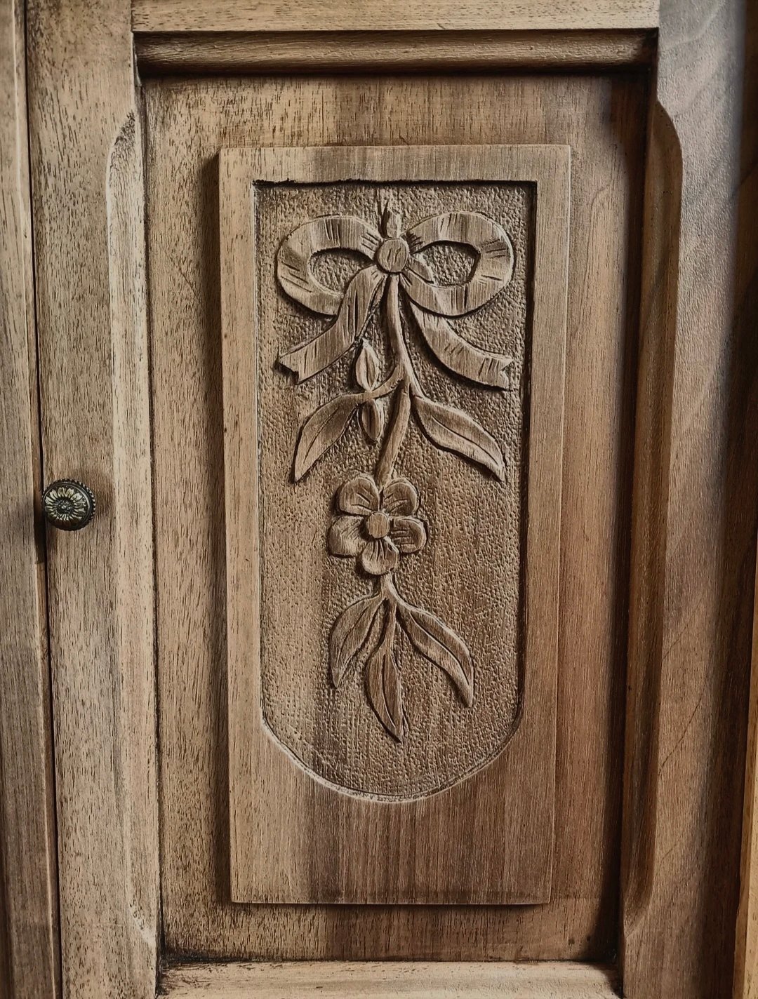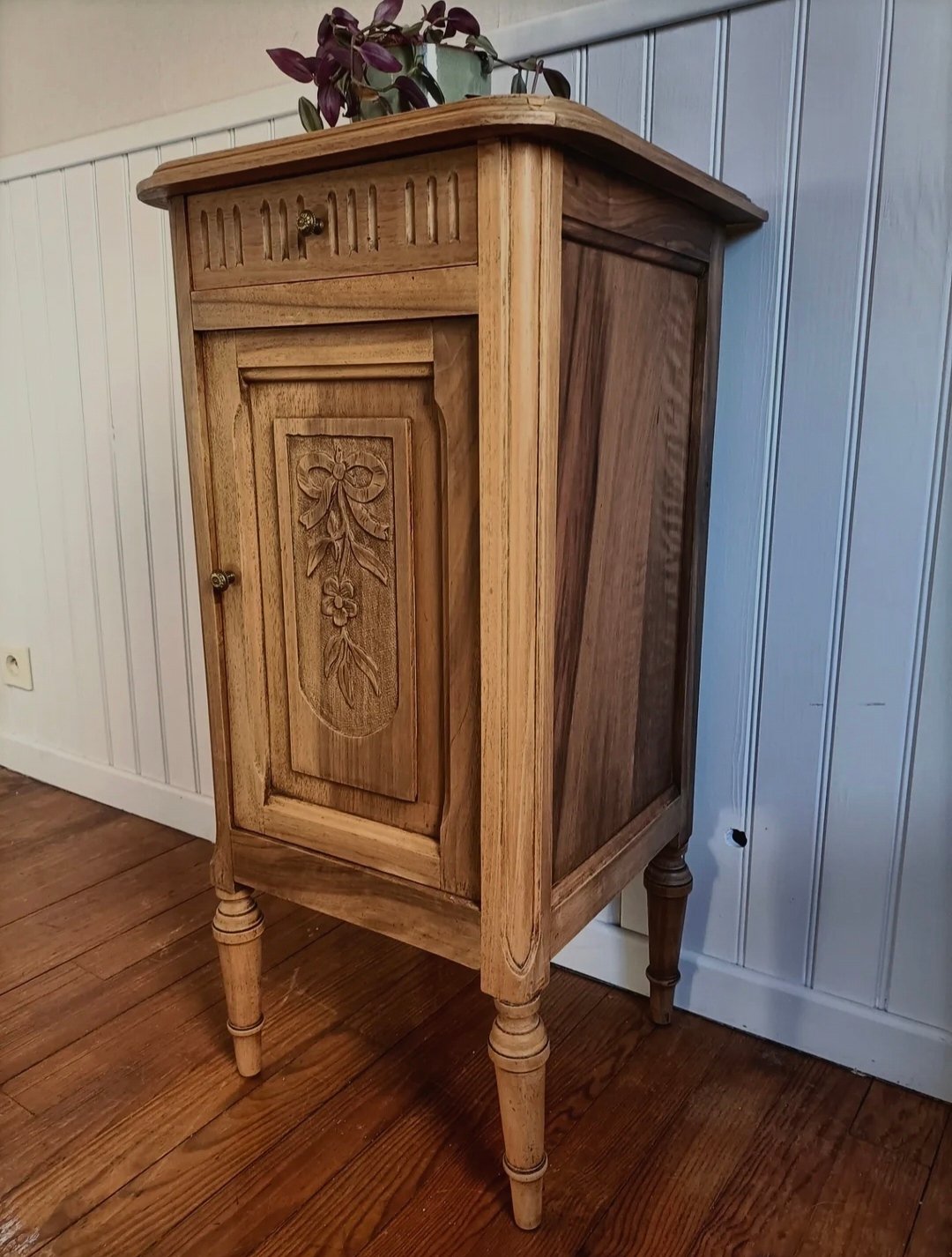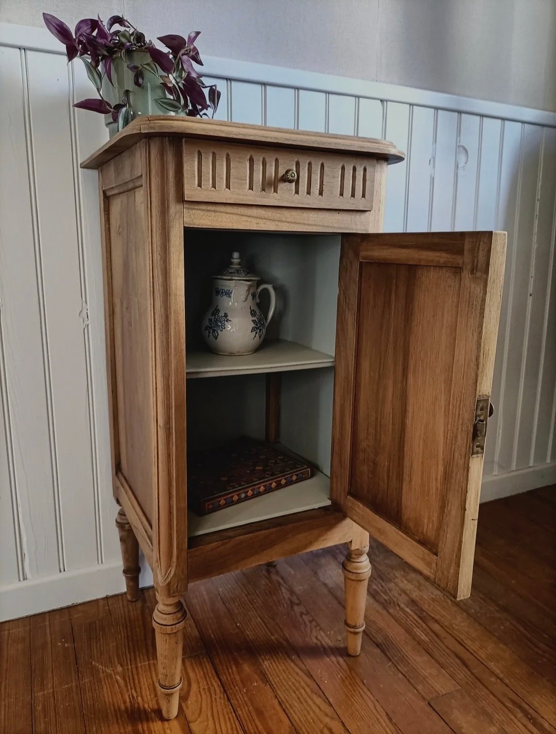 Craquez pour cette superbe commode style Louis XVI entièrement rénovée ! J ai commencé par un ponçage minutieux pour retirer la céruse blanche et le vieux vernis, révélant ainsi la beauté naturelle du bois. La teinte chaleur et l'aspect authentique sont désormais mis en valeur, lui offrant une nouvelle vie. Chaque détail à été soigneusement restauré pour que cette commode puisse continuer à raconter son histoire pendant de nombreuses années !